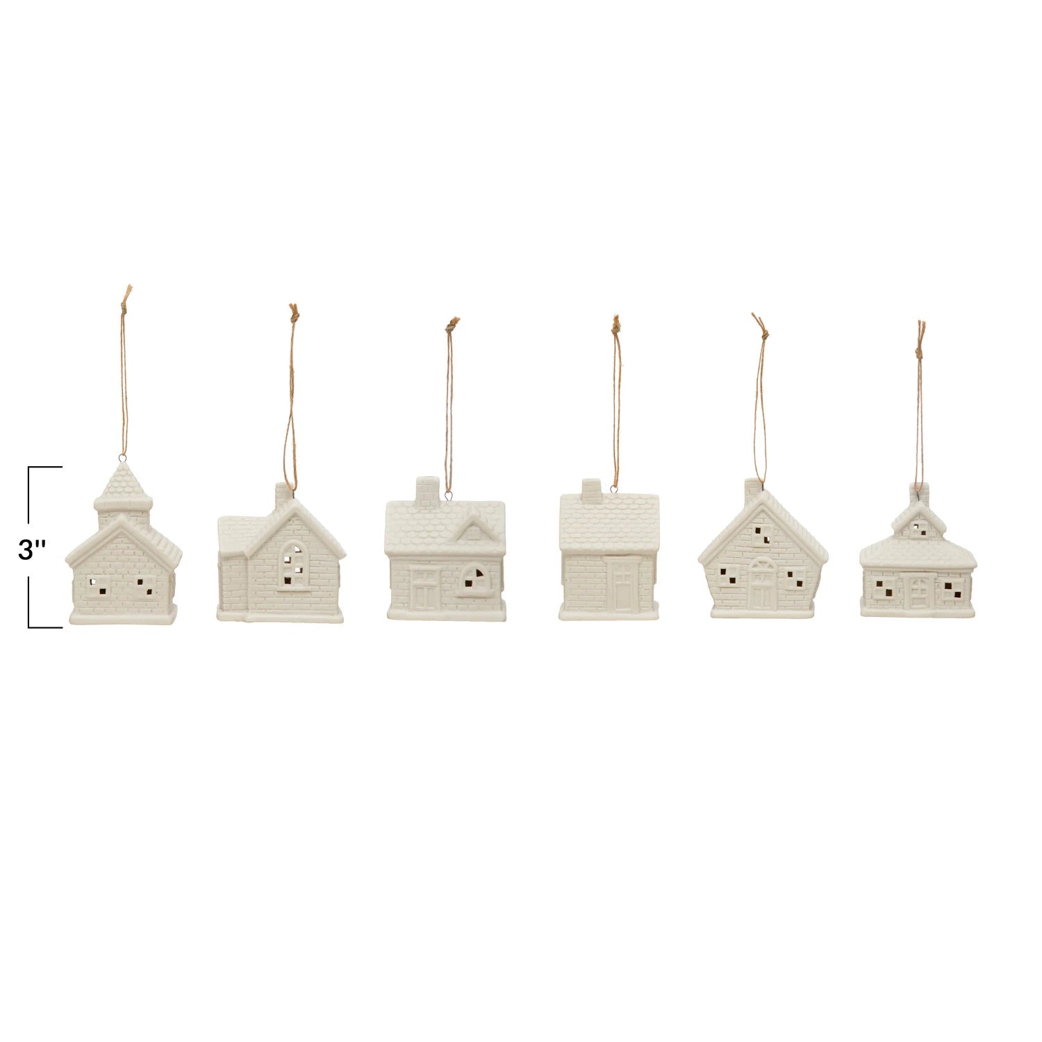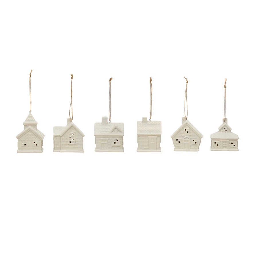 These stoneware house ornaments couldn't be cuter! Each one lights up & batteries are included. White in color so it would be a perfected addition to any style tree. These houses can even be used for tabletop decor. 6 different styles to choose from.