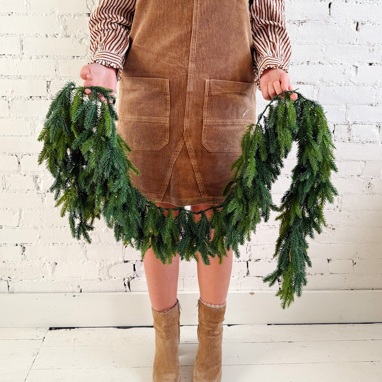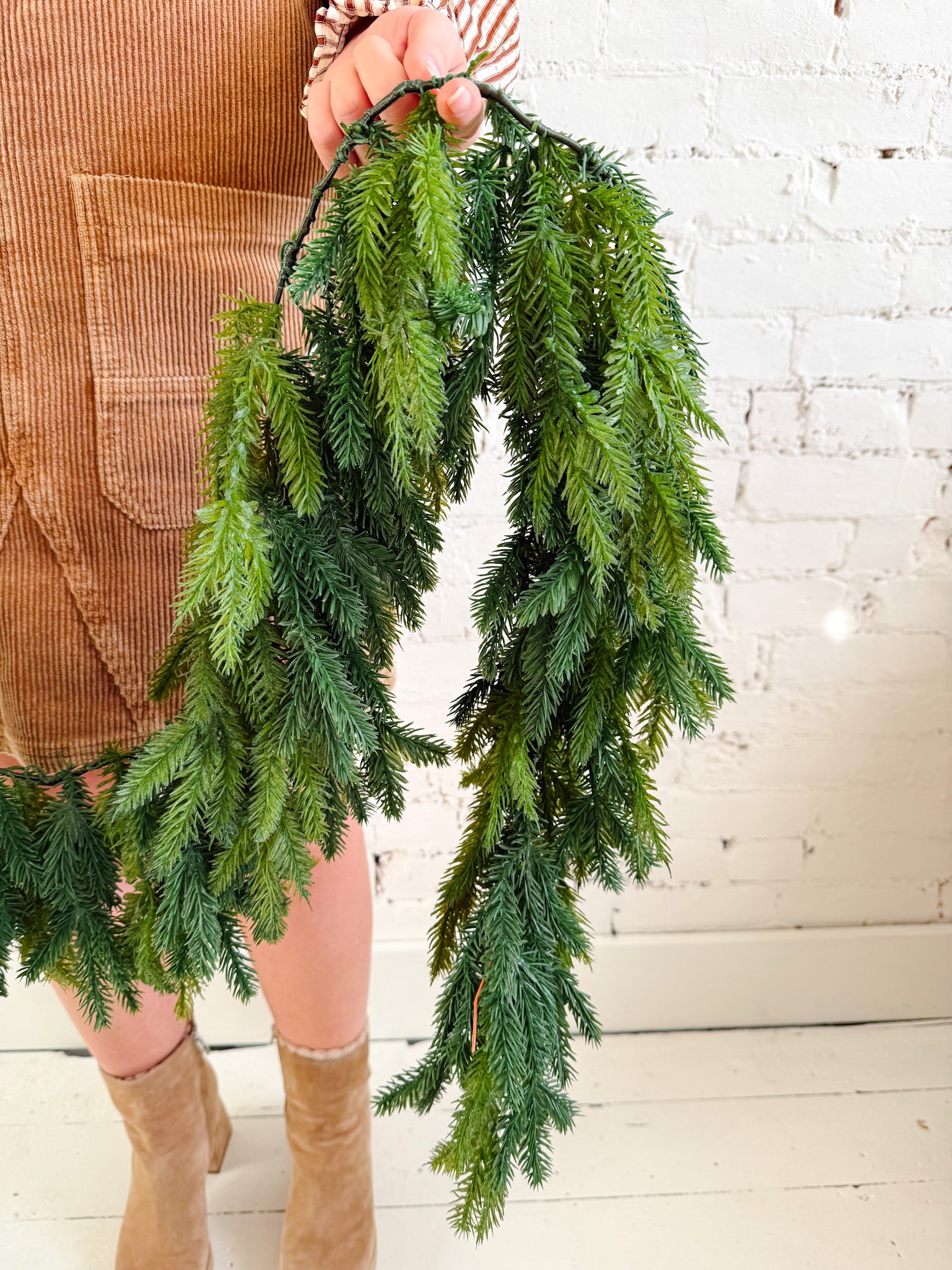 This 6' green hanging garland adds instant holiday charm with its natural, flowing drape. Perfect for framing doorways, windows, or stair rails, it brings that classic evergreen feel to any space. Hang it above a mantel, layer it with lights and ribbon, or keep it simple for a fresh, timeless look that works all season long.