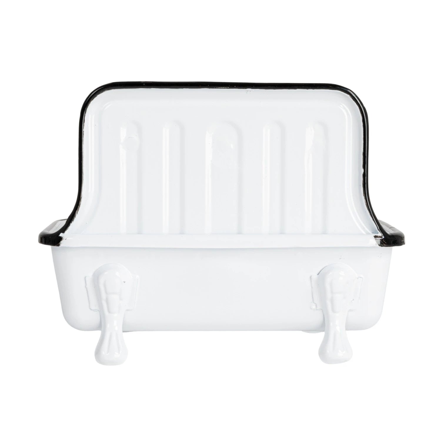 This metal soap dish is a sturdy, everyday essential designed to sit neatly on your bathroom or kitchen counter. Made from metal with a classic enamel-style finish, it features built-in drain holes that allow water to flow through, helping soap dry between uses and keeping countertops cleaner. Its simple, timeless design works easily in a variety of spaces, from a cozy bathroom sink to a well-loved kitchen counter. Style it alongside other sink essentials for a clean, pulled-together look, or pair it with a bar soap and hand towel for a thoughtful, functional accent that feels both practical and charming.