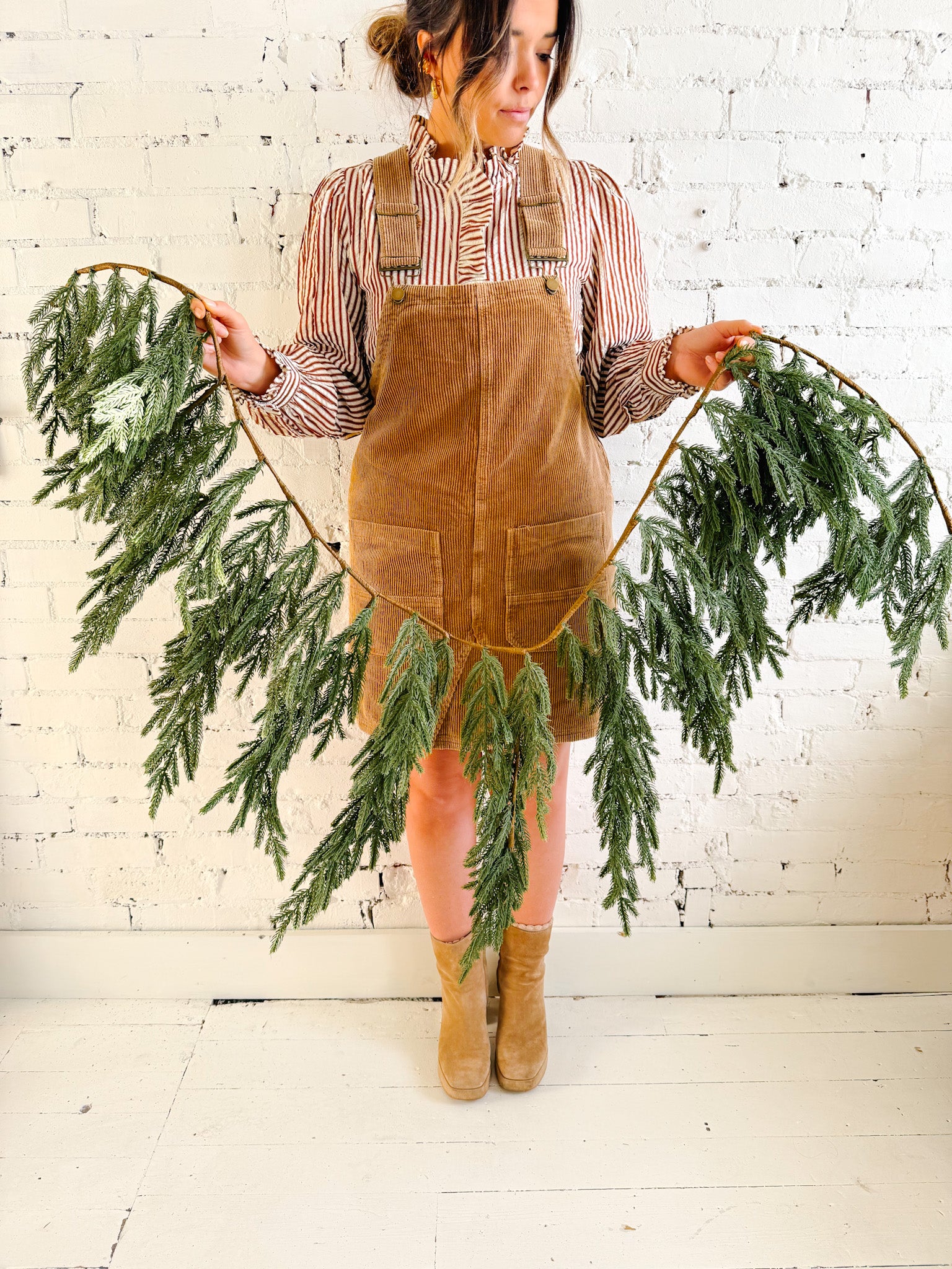 The Stowe brings that crisp, quiet beauty of winter indoors. We love this garland layered with other evergreen garlands for a dimensional and textured display. This faux cypress garland has a soft, lifelike texture that works beautifully on its own or layered for extra depth. Try it stretched across your mantel with a few brass candlesticks, draped down a stair post with ribbon, or laid along a dining table runner with scattered pinecones and votives. Its understated greenery offers just enough presence to feel festive, but is subtle enough to leave up well beyond the holidays. Calm, classic, and easy to style!
