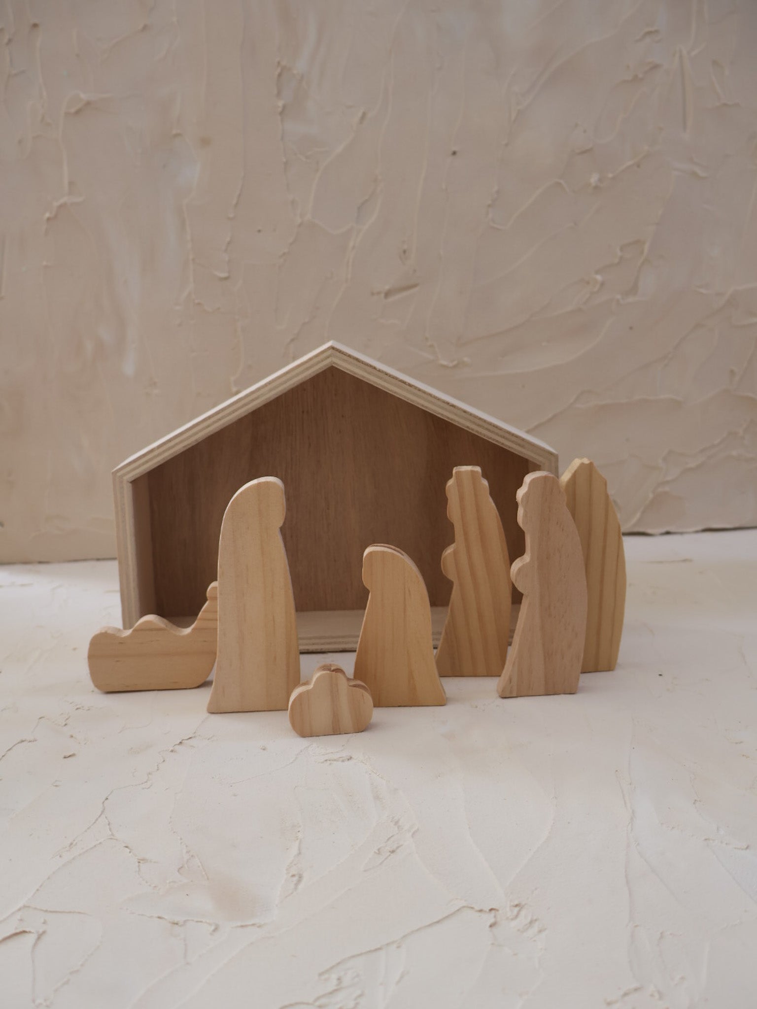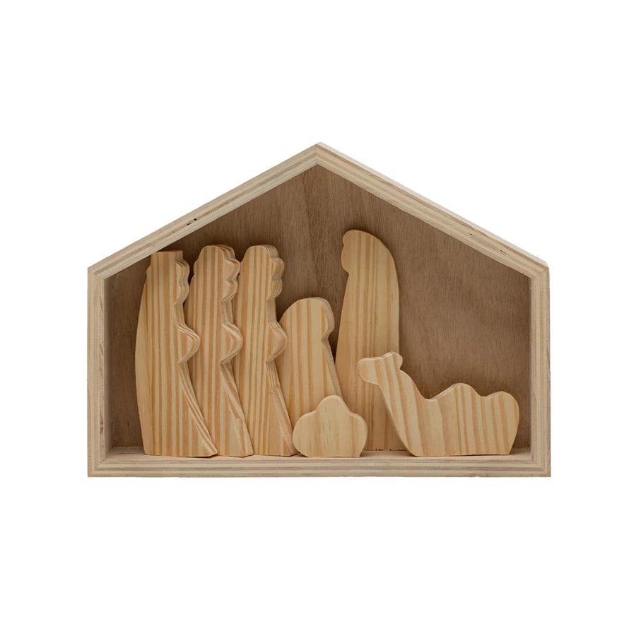 This nativity scene is perfect for displaying in the holiday season. Made out of pine wood, this nativity scene has a natural raw finish. This nativity has 8 pieces, and is a perfect piece for any religious home celebrating the holiday season.