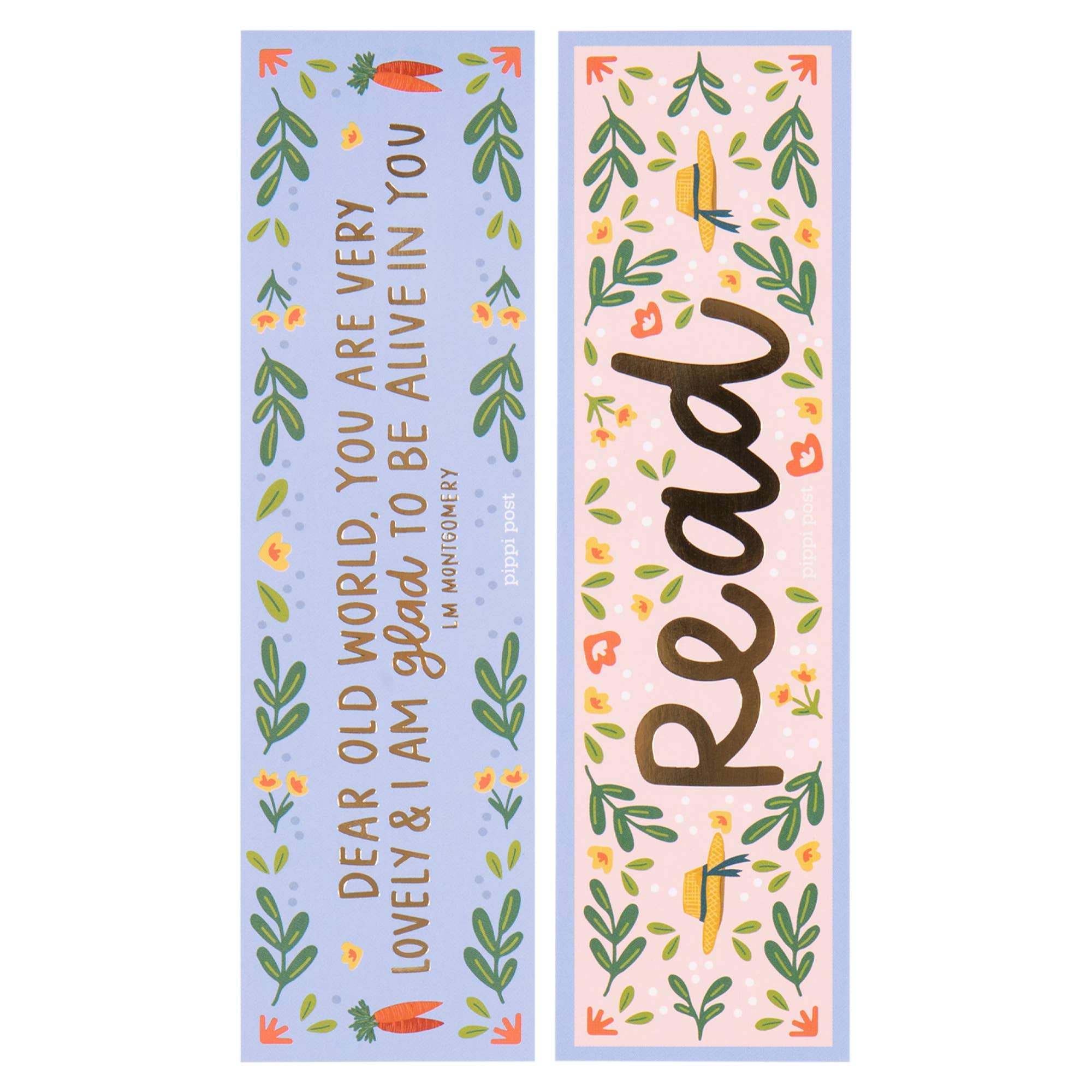 Step into the world of Anne Shirley with this gold foil bookmark set, inspired by Anne of Green Gables! One bookmark features the word “Read” in shimmering foil with Anne’s signature straw hat, while the other showcases L.M. Montgomery’s beloved quote, “Dear old world, you are very lovely & I am glad to be alive in you.” Made of durable acetate, these bookmarks are perfect for book lovers, classic literature fans, and kindred spirits alike!