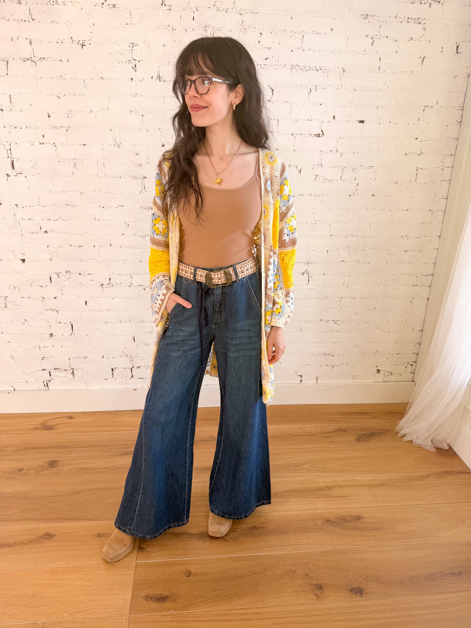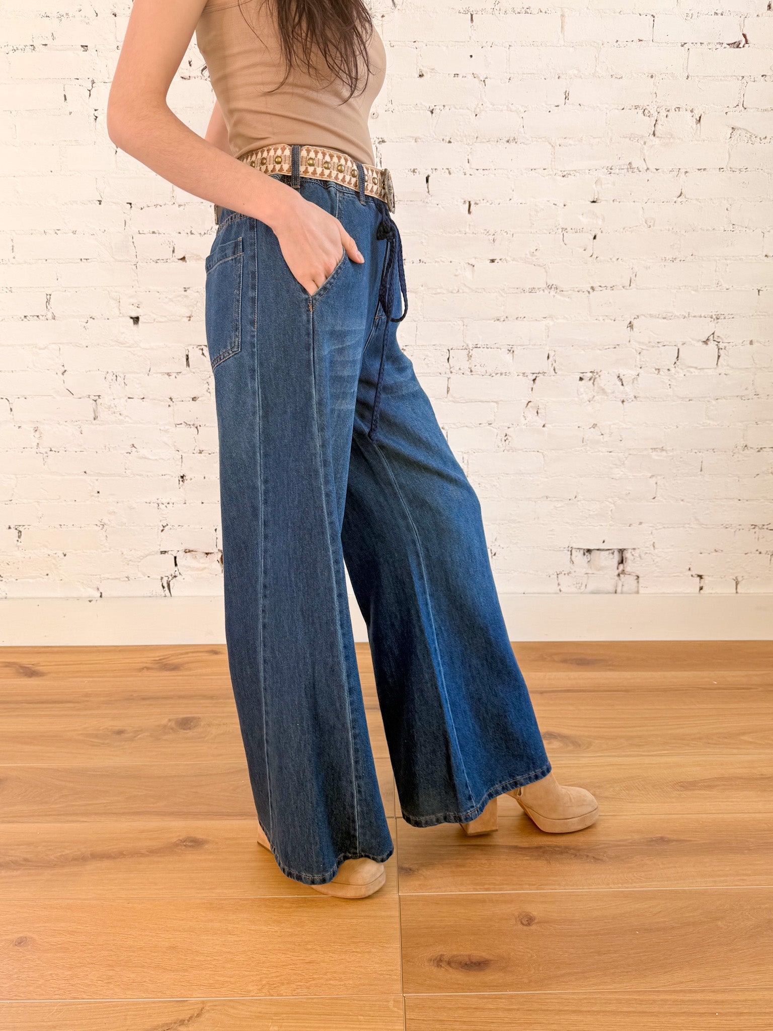 A breezy take on a classic, these wide-leg denim pants bring movement and ease to your everyday looks. These pants are buttery soft! The elasticized waist with drawstring keeps them comfortable while the flowy silhouette feels both relaxed and polished. Pair them with a tucked-in top for an elevated mood, a fitted tee for weekend simplicity, or lean into the denim-on-denim moment with the matching button-down top. They’re equally perfect with strappy sandals in warm weather or ankle boots layered under the hem come fall.
