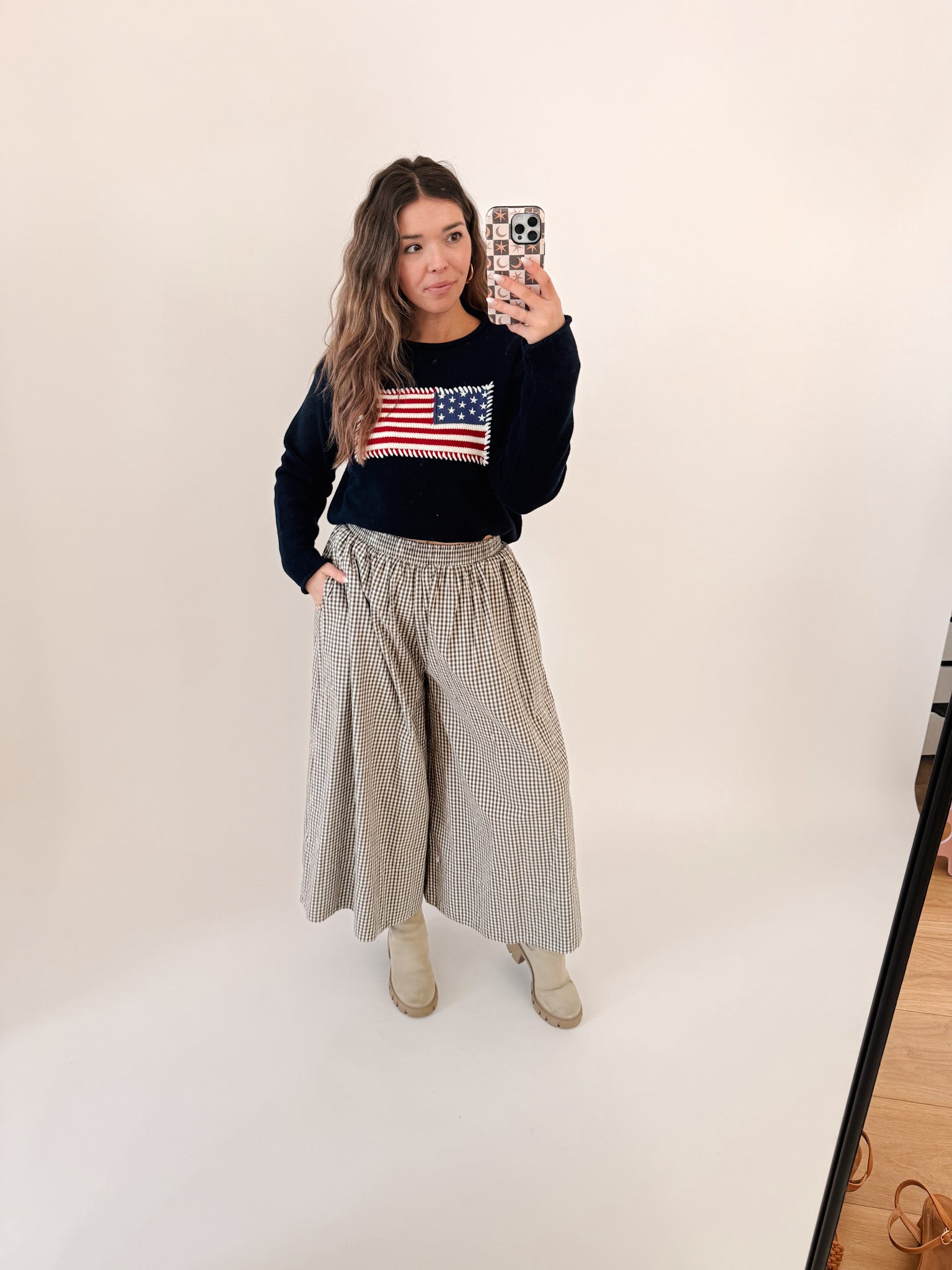 These are the pants you reach for when you want to feel comfortable and pulled together. Soft-washed with an easy drape, these gingham culotte pants move with you and never feel restrictive. The wide leg and cropped length keep the silhouette breezy, while the elastic waistband makes them an instant yes for all-day wear.Style them with a simple tee and sandals for warm days, or pair them with a chunky sweater and clogs when the weather cools.