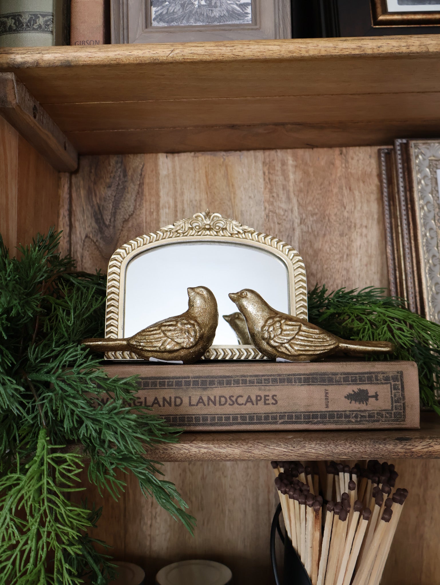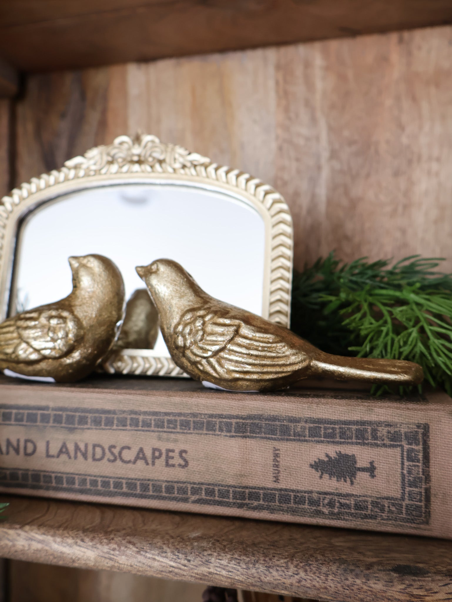 Sold individually... These sweet little birds are are made from solid cast iron and finished with a shiny gold paint. They make the perfect addition to the top on a book, on a mantle or shelf, or use as a paperweight. They are pretty for the holiday season but can be used year round