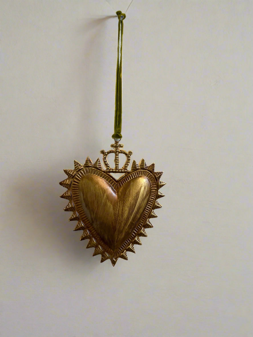 Crowned Sacred Heart Brass Wall Art / Ornament