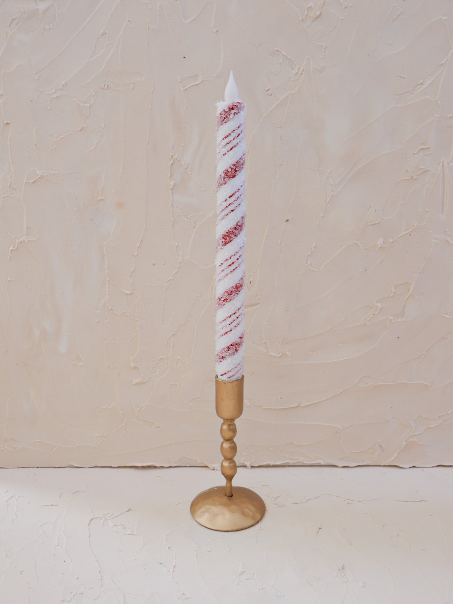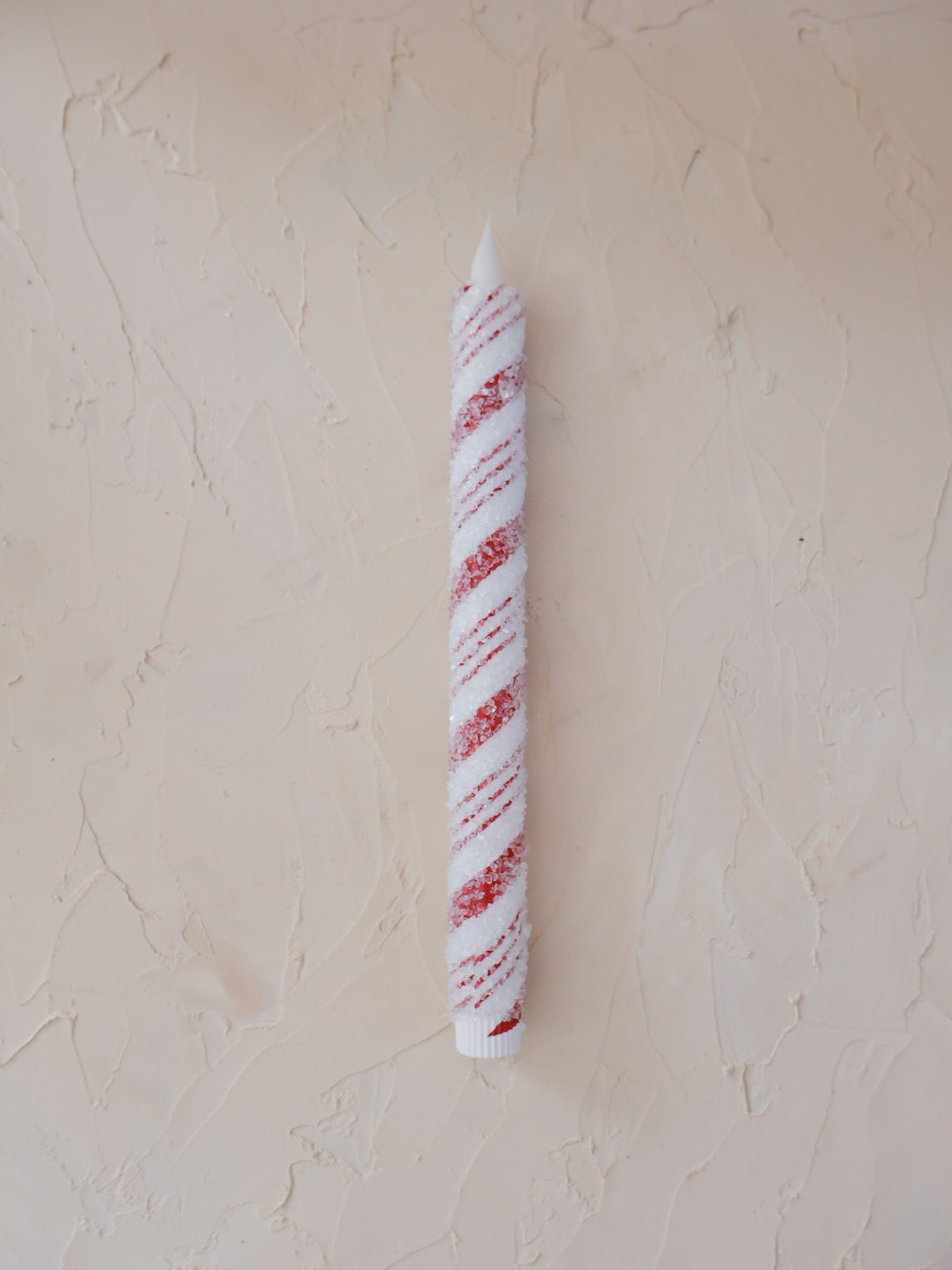 Sold Individually...With classic red-and-white stripes and a dusting of glitter, these flameless taper candles bring sweet holiday sparkle, no matches needed. The warm LED glow and built-in 6-hour timer make them a cozy, worry-free way to light up your table, mantel, or windowsill all season long.