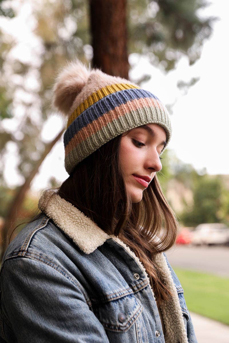 Featuring a playful pom-pom on top and soft knit construction, it's the perfect accessory to keep you warm while adding a pop of color to your winter look. Whether you're heading out for a quick errand or settling in by the fire, this adorable beanie delivers both style and snuggle-worthy warmth.