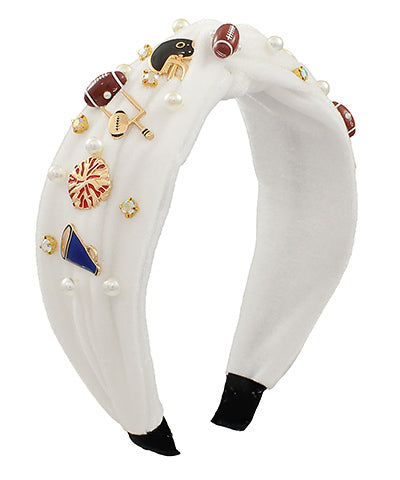 No matter what football team you root for, this is the perfect headband! Coming in this white color with charms of footballs, cheerleading gear, helmets, goals, diamonds, & pearls. This is a feminine way to support your team!