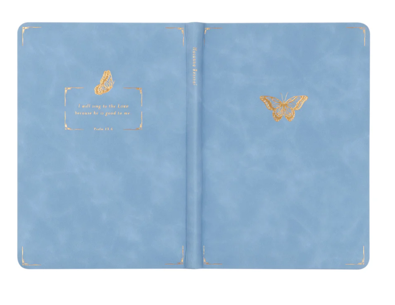 This beautiful notebook is inspired by the town of Bethany, where Jesus raised Lazarus from the dead. The gold-foiled butterfly, intentionally placed, symbolizes new life—just as Lazarus received through Christ’s resurrection power. In the same way Jesus called Lazarus to remove his grave clothes, the butterfly emerges in a new and radiant form, reflecting the transformation we experience in Christ. The back of this notebook features Psalm 13:6: “I will sing to the Lord, because He is good to me.” This verse captures the natural response of our hearts when we reflect on God’s goodness. May this notebook accompany you faithfully as you engage with the Word—whether through Scripture, sermon notes, journaling, or any form of reflection—serving as a space to record your thoughts, prayers, and encounters with his truth.