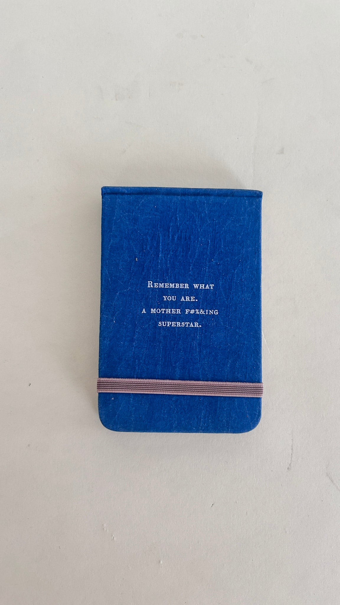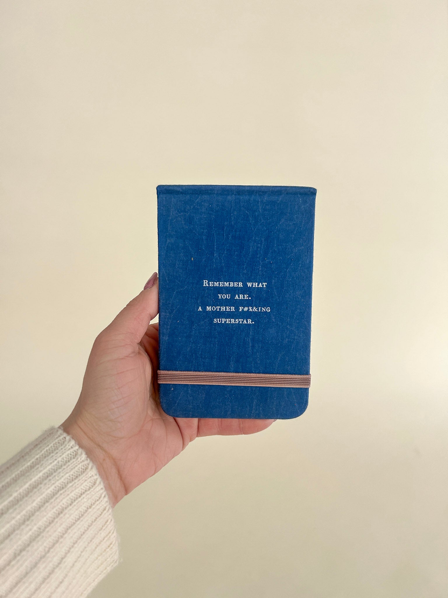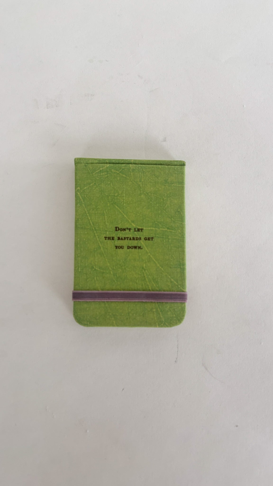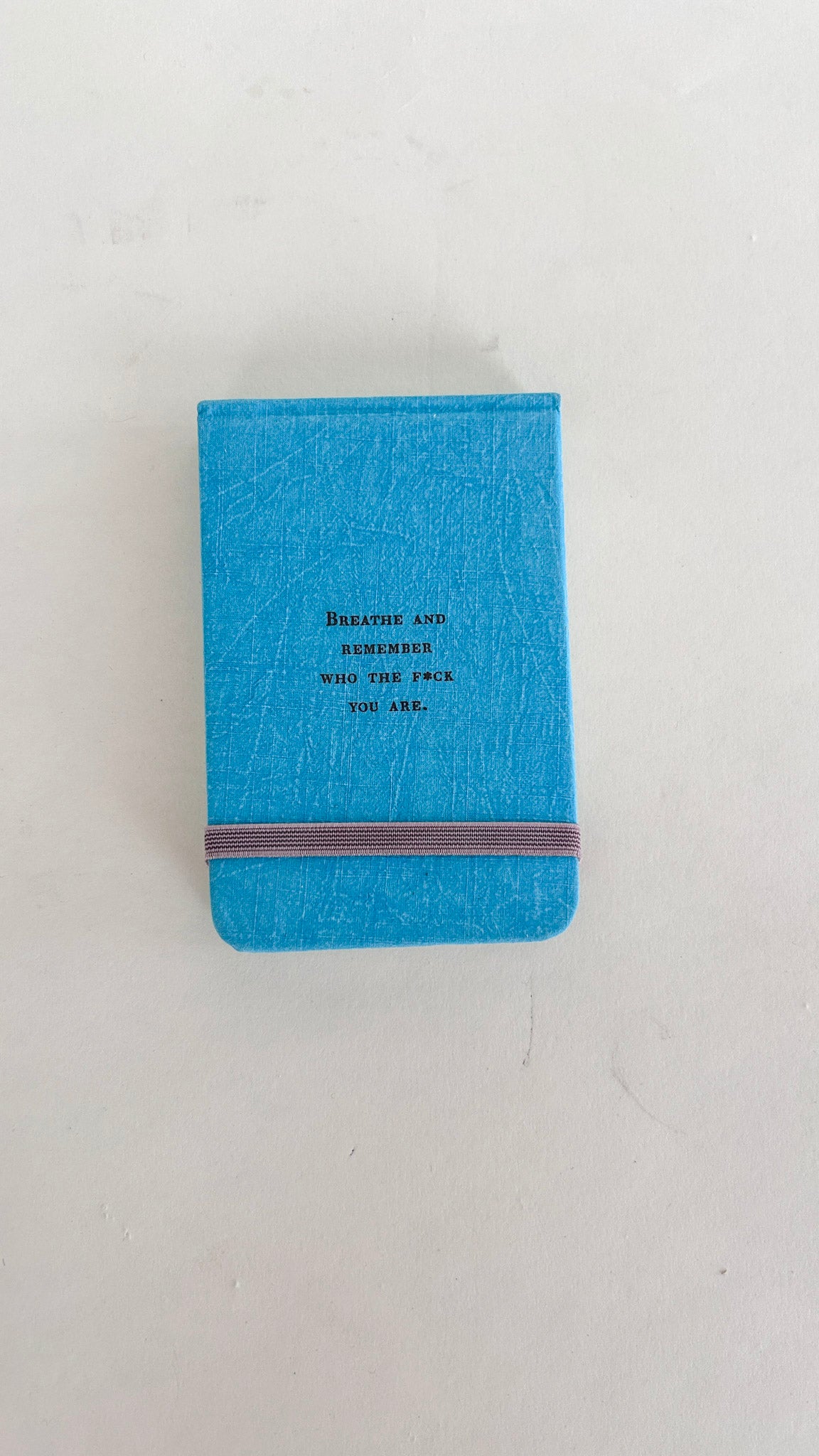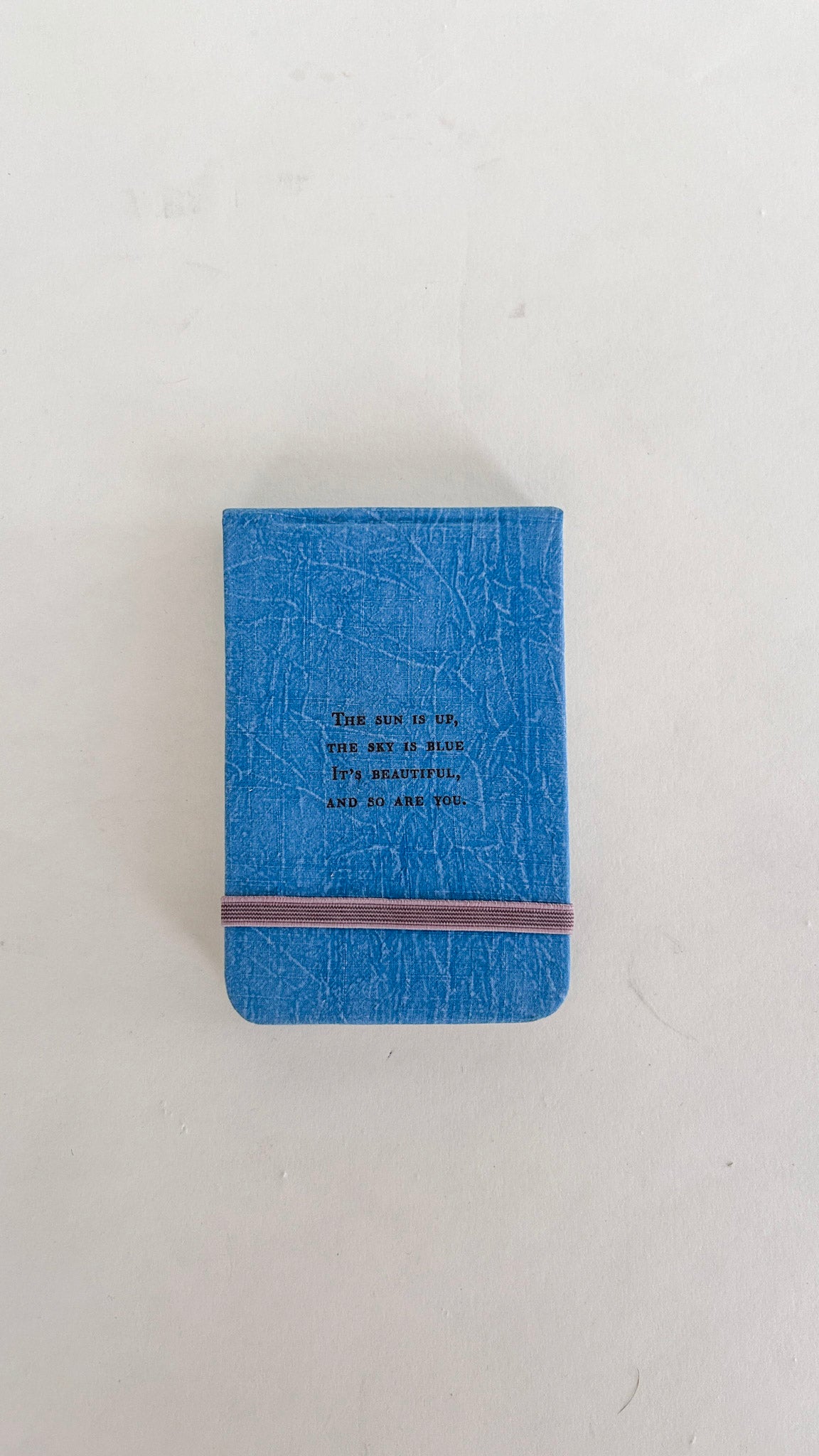 These pocket-sized notebooks are full of color and possibility. Unlined pages invite free thinking, each cover carries a different quote or phrase, and an elastic strap keeps everything together.