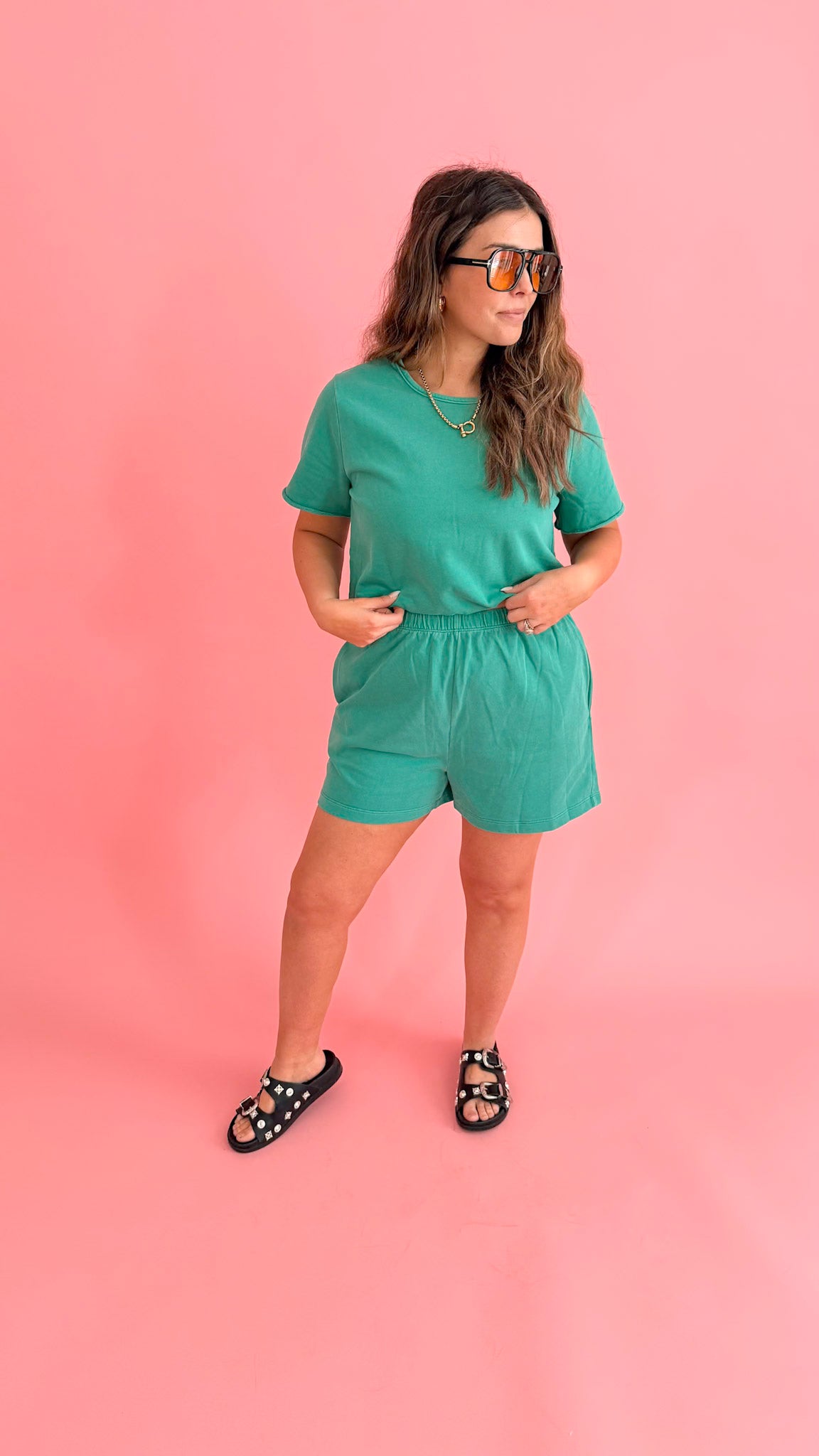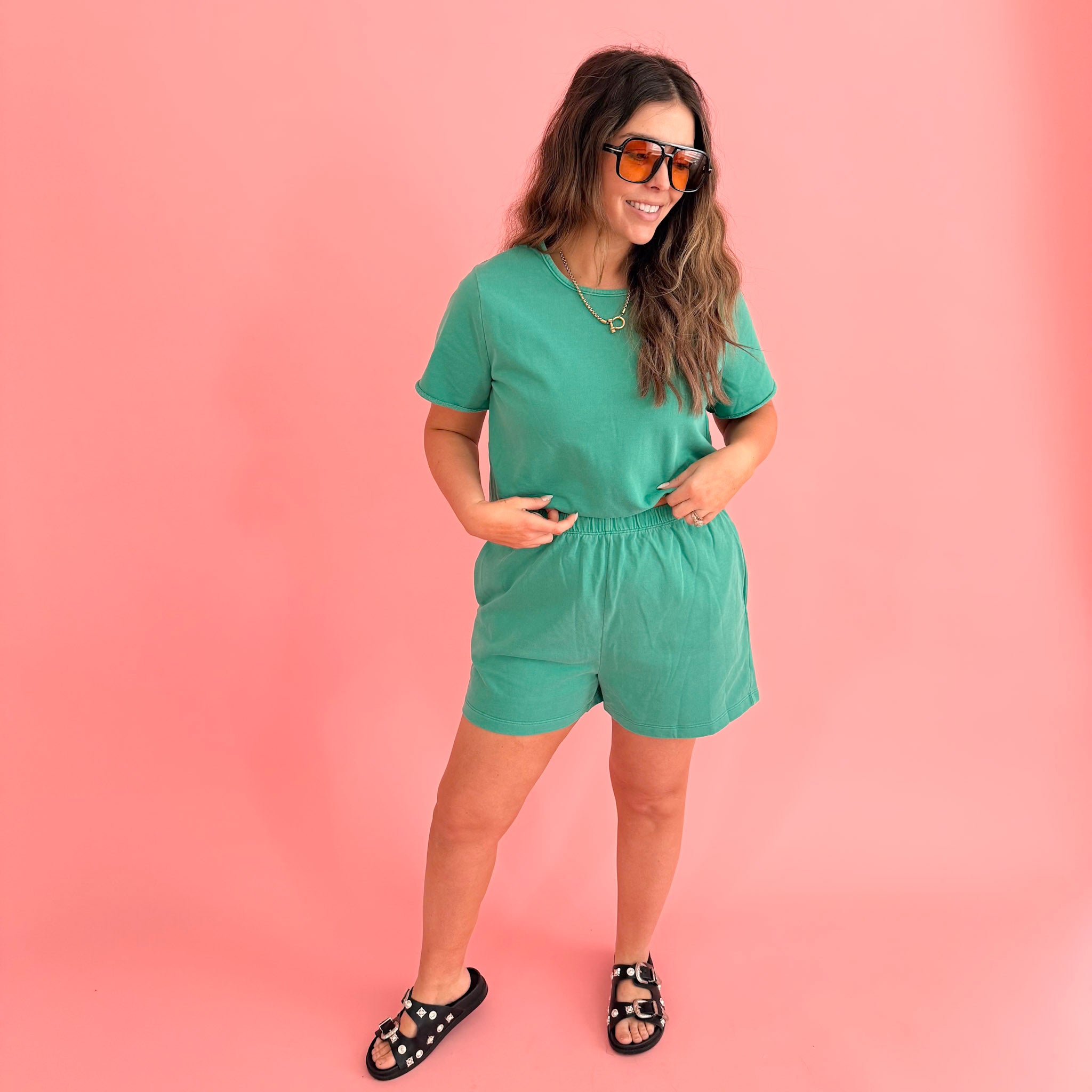 Washed Cotton Crop Top & Shorts Lounge Set in Green