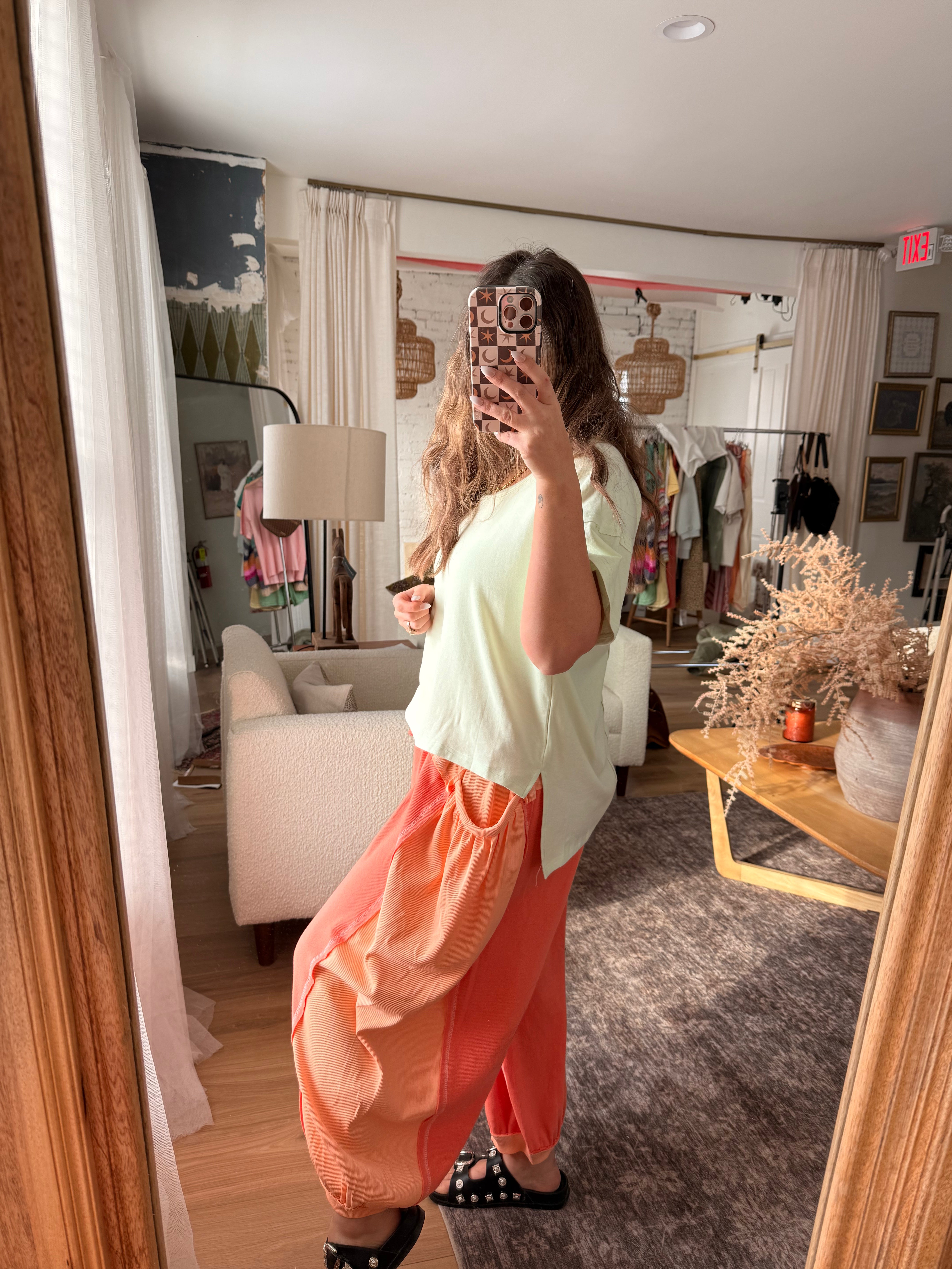This light mint tee is the definition of easy and cool. Designed with a soft washed finish and a relaxed, boxy fit, it drapes perfectly for that lived-in, throw-on-and-go feel. It is a high-low with slits on the side. The slightly cropped front makes it easy to style with high-rise denim, flowy pants, or layered over dresses for a laid-back boho look. Lightweight, breathable, and endlessly versatile.