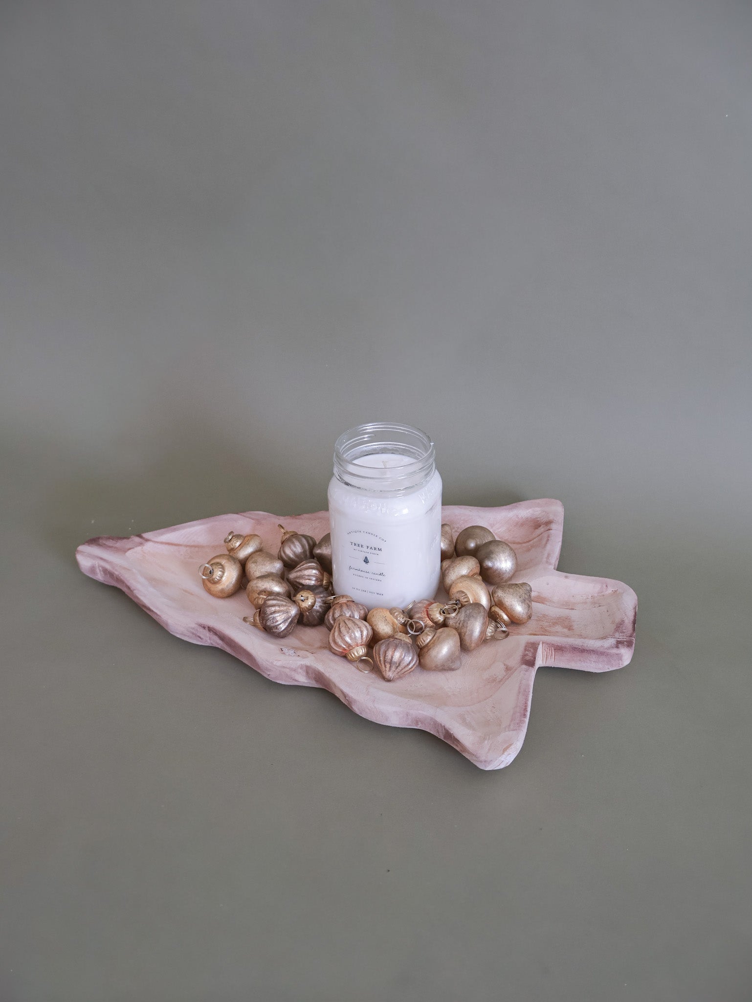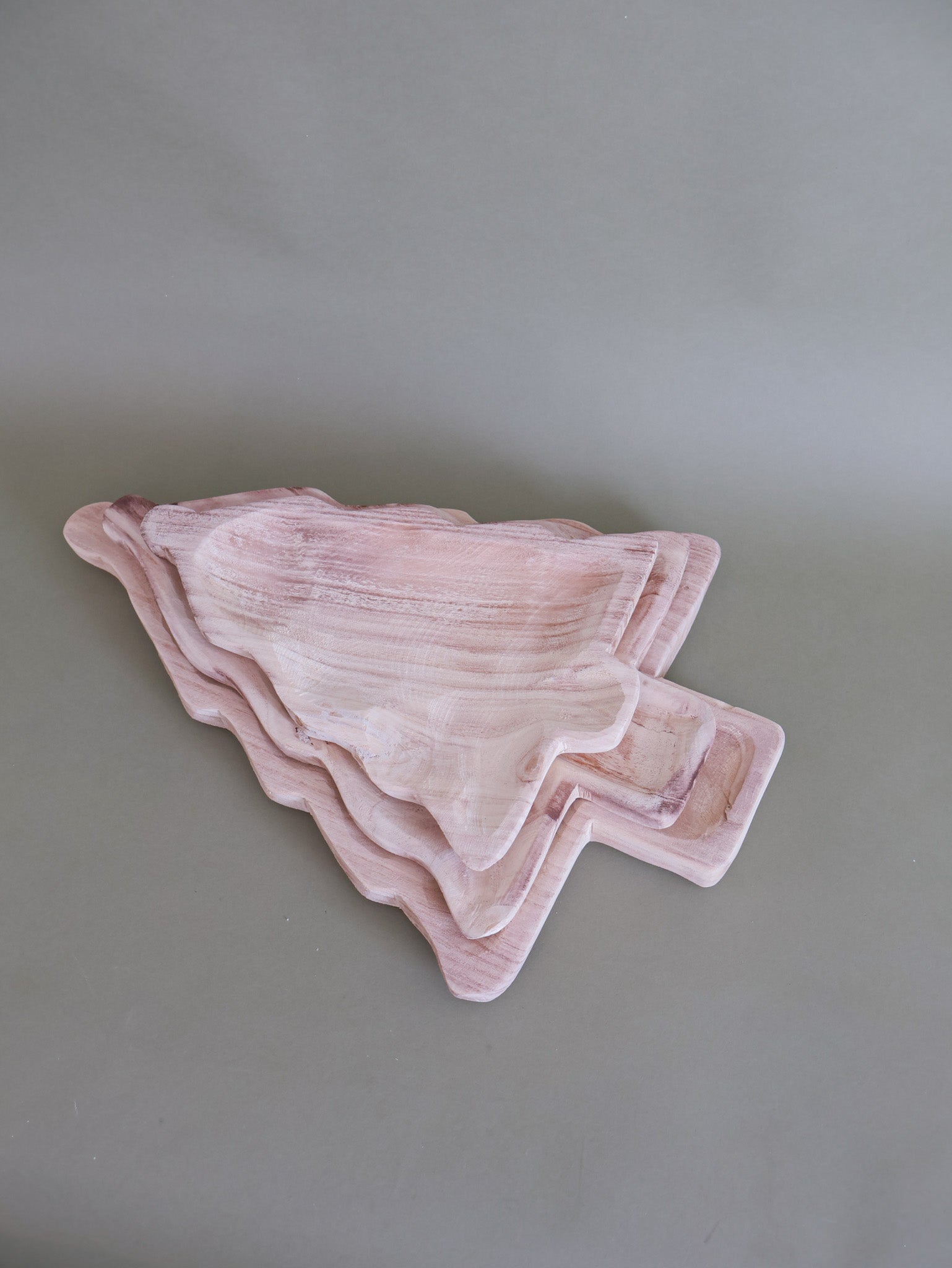 Sold individually... these decorative wooden trays are gorgeous to place on a coffee table, console table, or even on your dining table with a candle or decorative object on top. We sell bags of assorted mini bells that can fill each tray. While the finish is not food safe, you can easily add decorative napkins to serve dry food items like rolls or crackers.