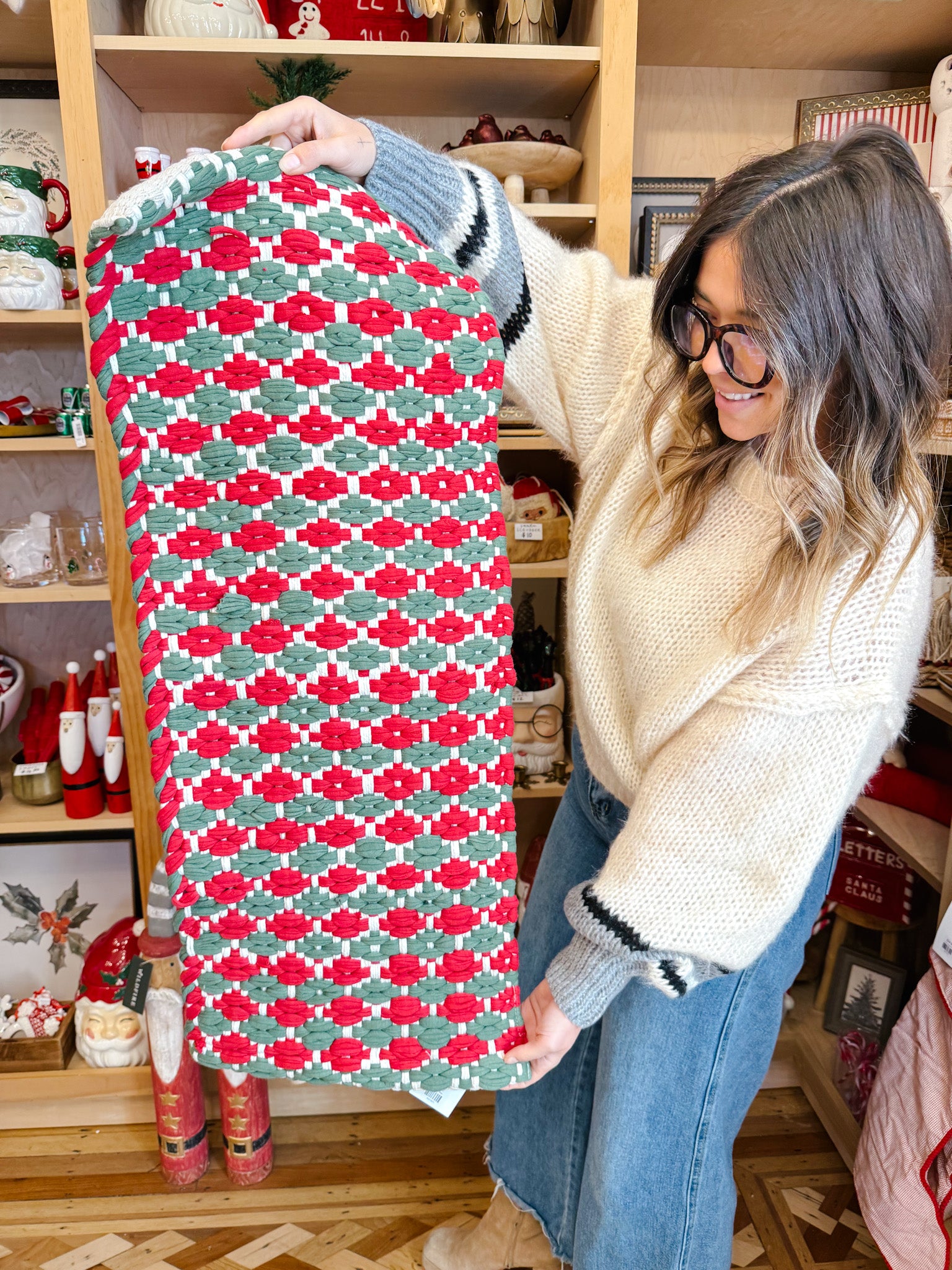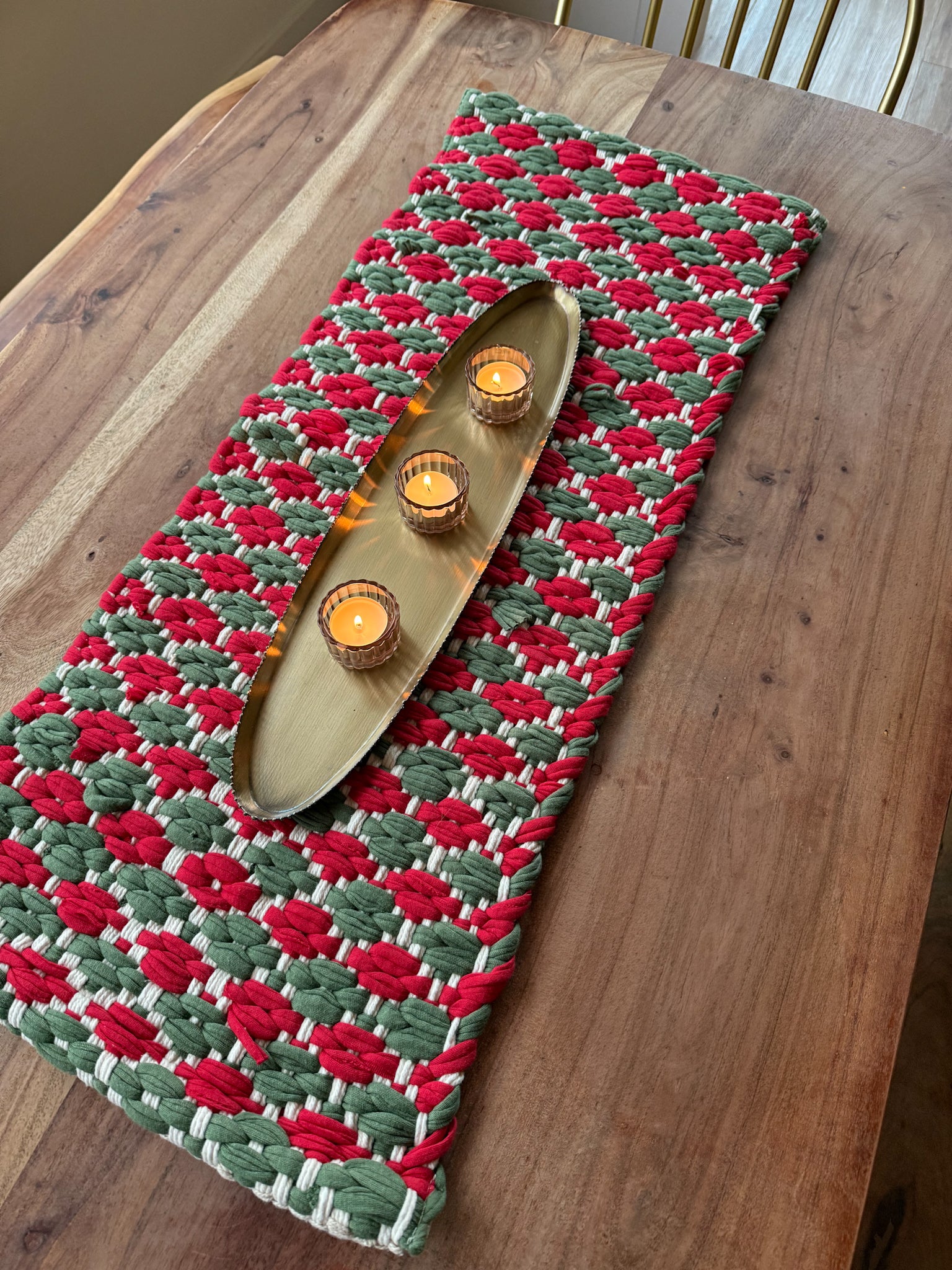 Bring a touch of cozy charm to your holiday table with the Holly Berry Weave Table Runner. Handwoven with a festive mix of deep green, bright red, and soft cream, this runner instantly sets the mood for gatherings big and small. Its textured design feels both timeless and homey, making it the kind of piece you’ll pull out year after year.