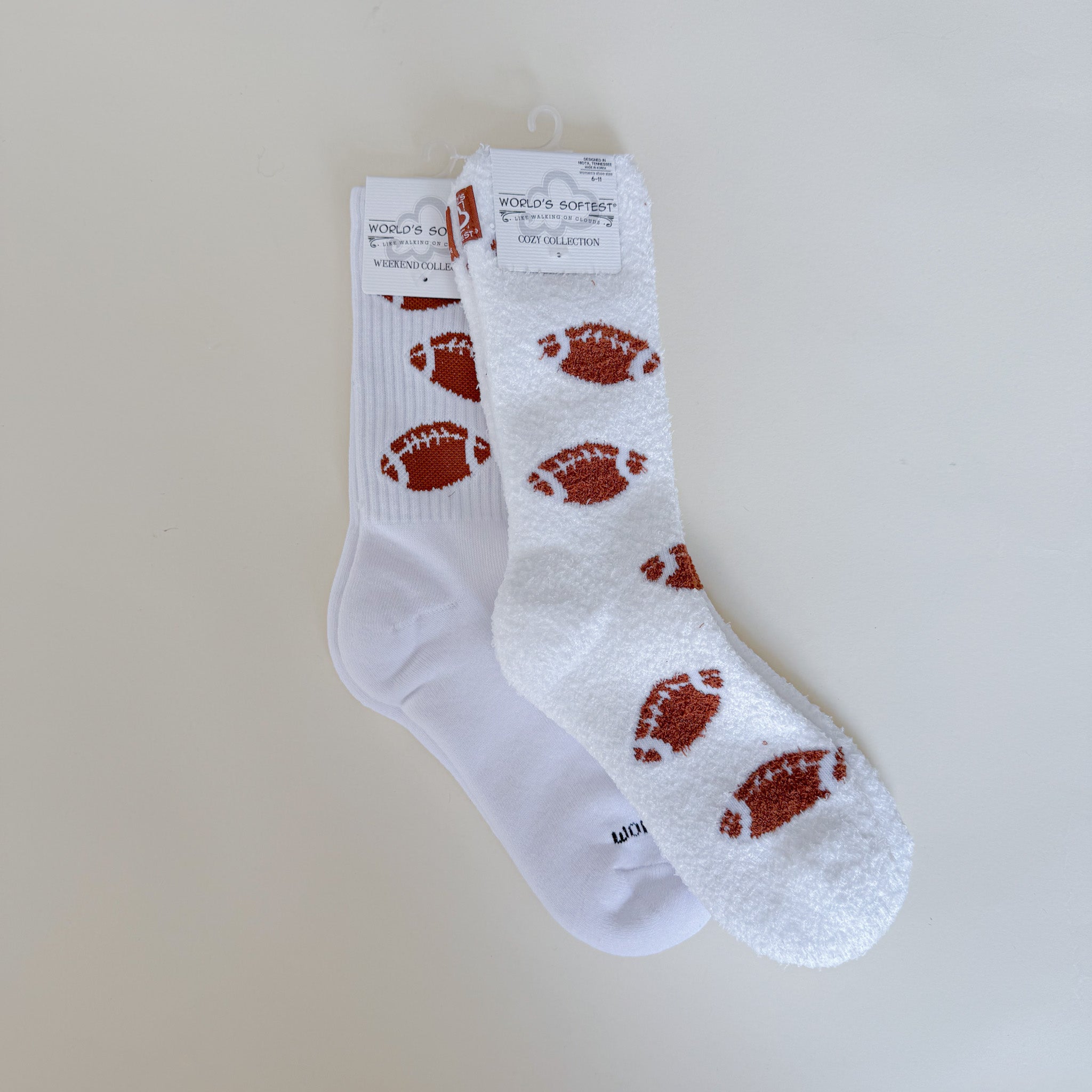 Get ready for the season with our adorable Football Socks - available in a Cozy Style, or a Crew Style.