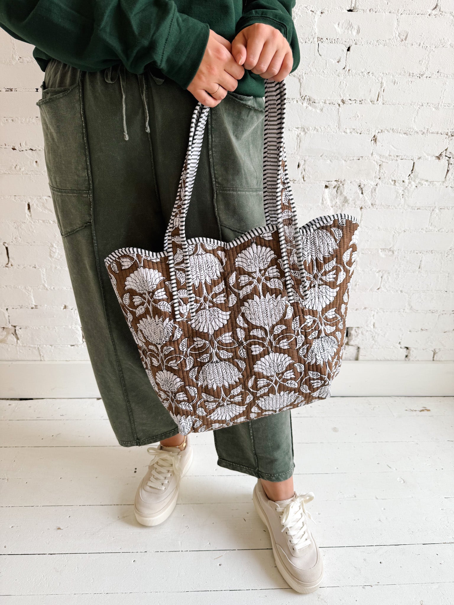 We love this bag for everyday - and especially going into Fall with the pretty brown color. Roomy and lightweight, it’s perfect for daily errands, weekend adventures, or even as a chic work bag. Effortlessly stylish, this tote proves that neutral tones can still make a statement. Interior has a striped fabric and one pocket. Open Top.