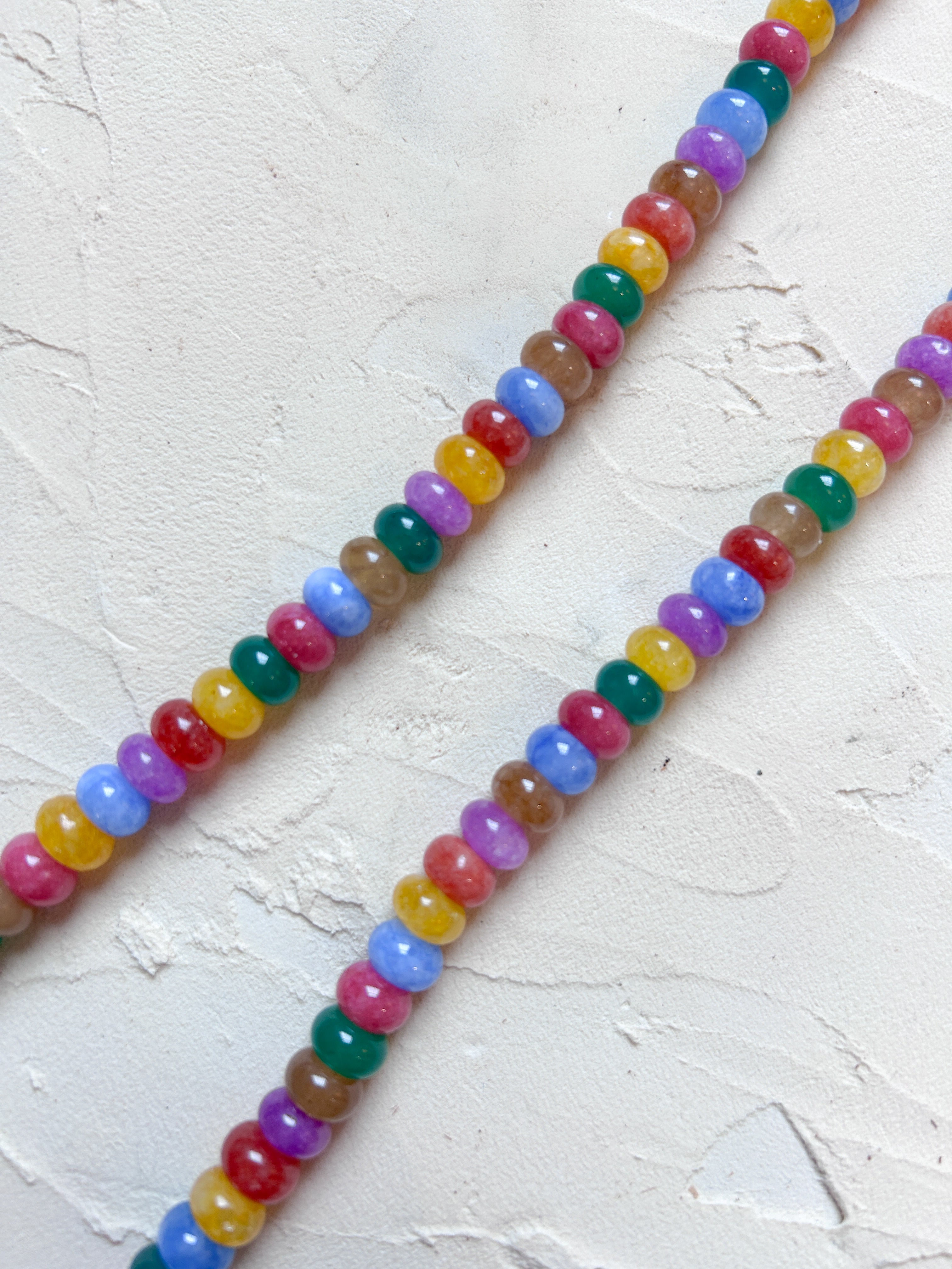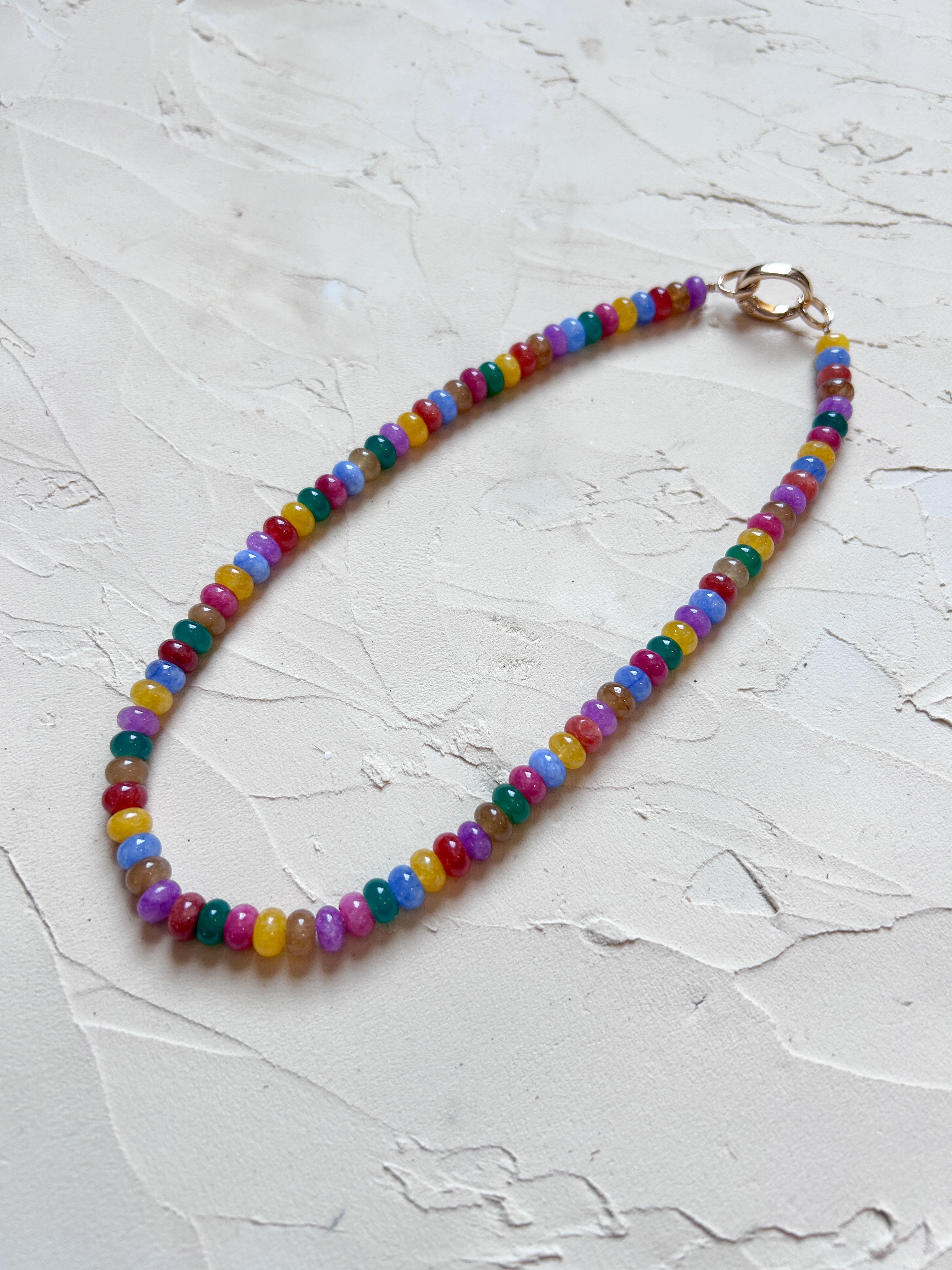 This necklace is pure joy! Playful, fun and a perfect addition to make your outfit stand out. Layer with gold chain necklaces or more beaded necklaces.