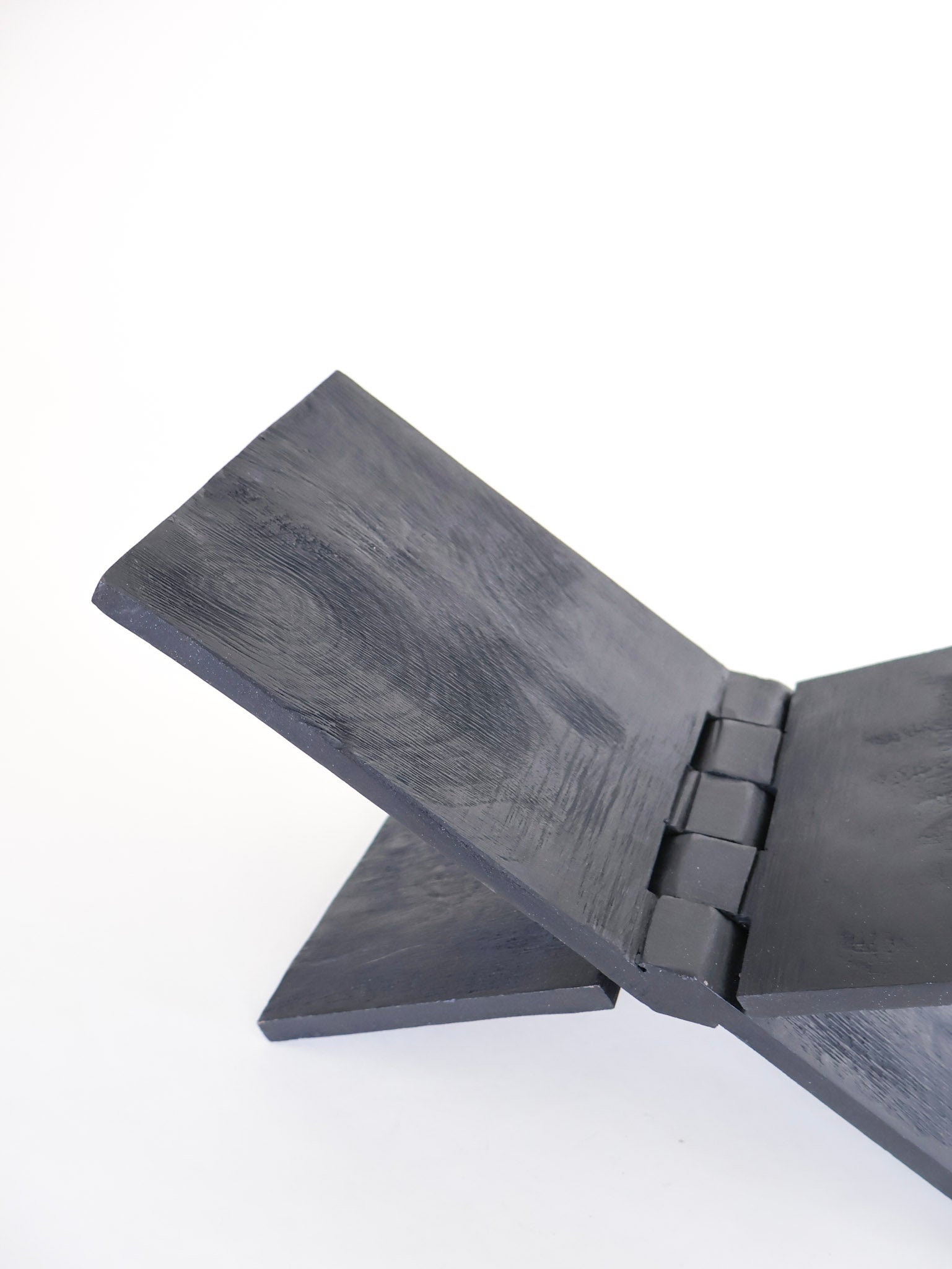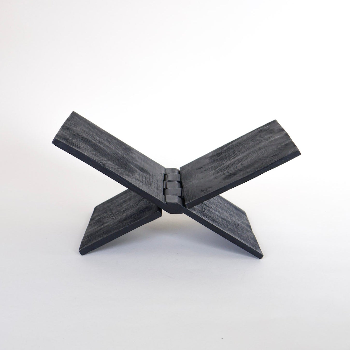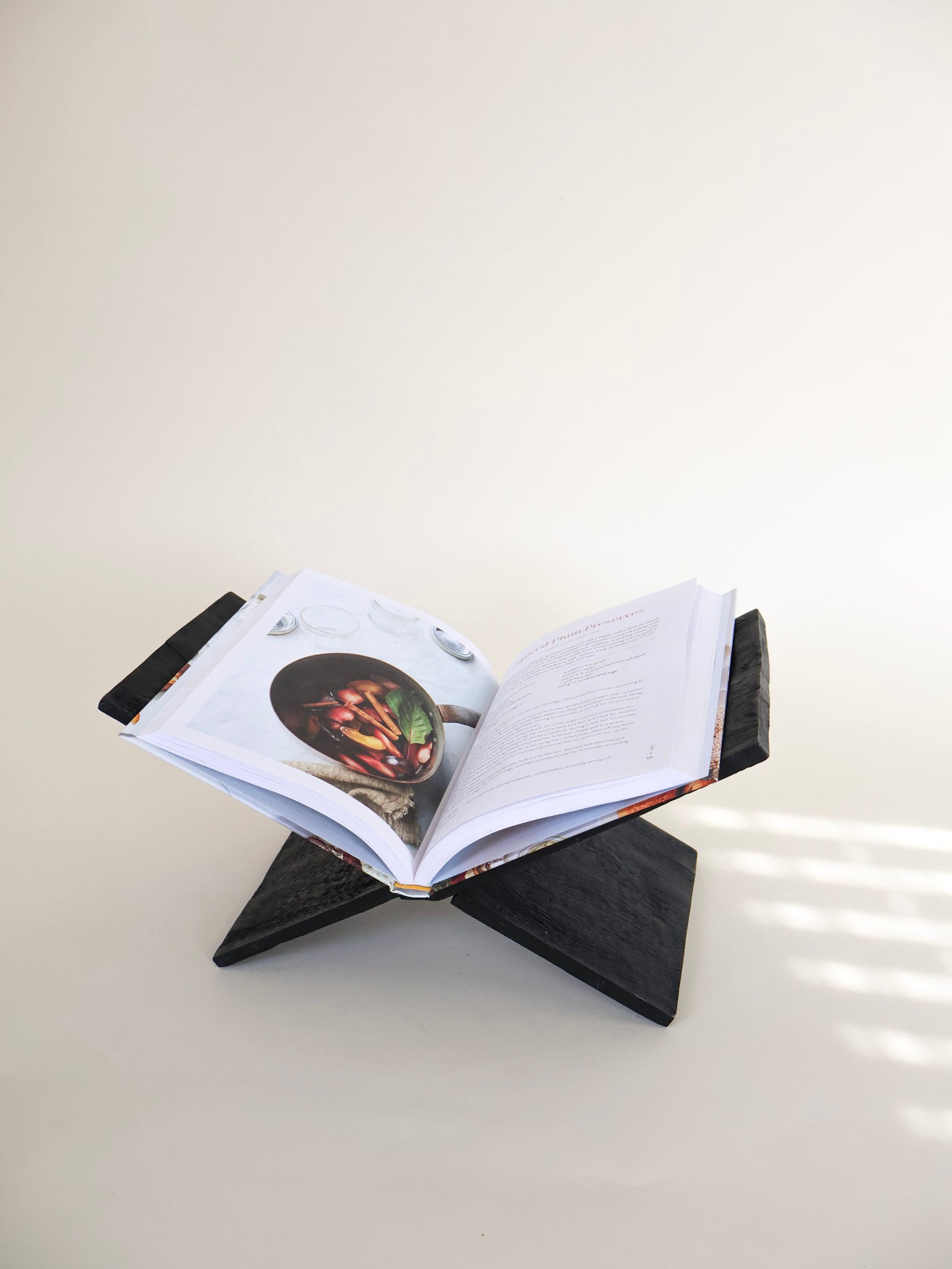 Clean lines and a simple crossed form give this book holder an easy, sculptural feel while keeping favorite reads or cookbooks right within reach. Its matte black finish adds contrast to stacks of books or open shelving, and it works just as well holding a current read on a side table as it does supporting a cookbook in the kitchen. Style it alongside stacked books, small ceramics, or a candle to create a relaxed, collected look that feels effortless.