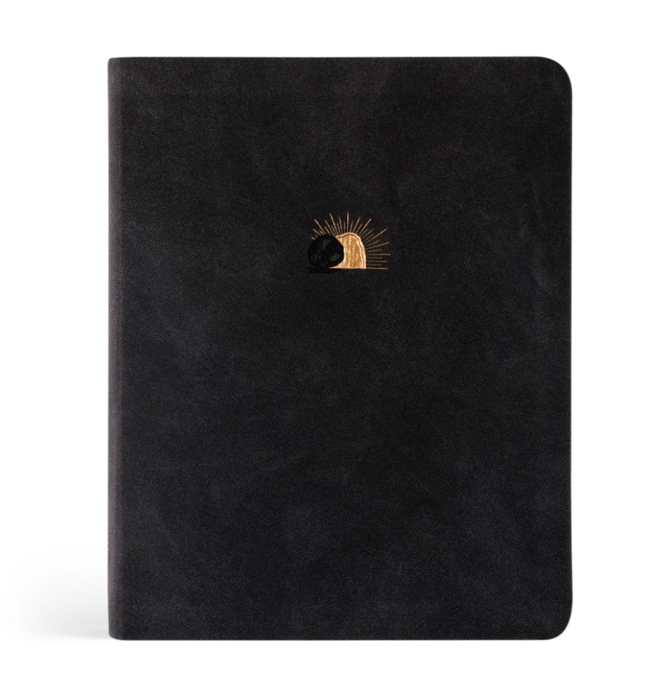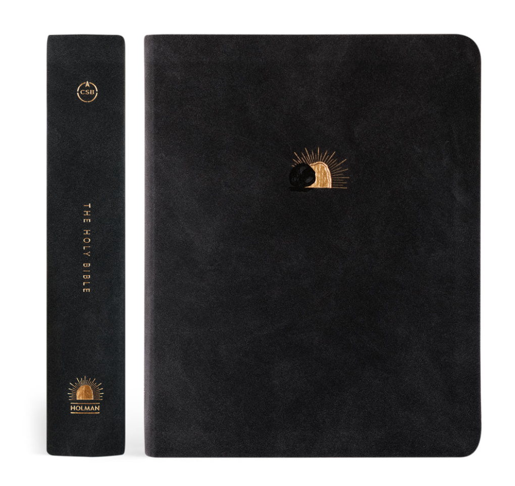 This black leather-like Bible is based on the beloved city of Jerusalem in Israel, where history unfolds in the Old and New Testaments and where the last week of Jesus’s life was spent. May we never forget the unashamed, powerful ministry that took place in the city that saw Jesus's arrest, trial, crucifixion, entombment, and resurrection. A gold-foiled design of Jesus’s open tomb is placed on the cover of this Bible, symbolizing his victory over death and defeating every act of evil that has ever been and will ever be. The back of the Bible features Matthew 28:6, “He has risen just as he said,” a verse that declares the power and sovereignty of God. Our prayer is that this verse reminds you of God’s trustworthy character and the victory he has over your life!