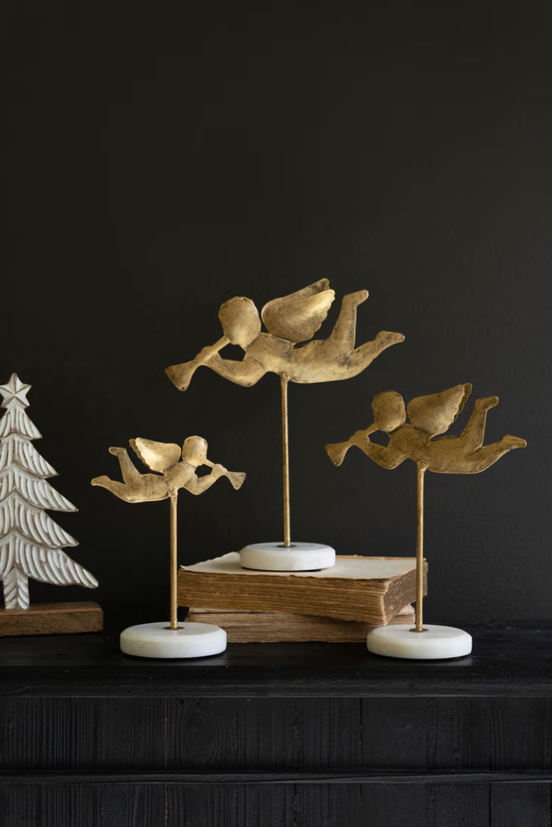 Sold Individually...These graceful metal angels feel like the perfect finishing touch. Perched on a solid marble base, each one is ready to bring joy to your nativity, village scene, or mantle moment. Style them on your fireplace, console, or nestled among your trees — they swivel to face either direction and have 3 rubber feet on each to prevent scratching.
