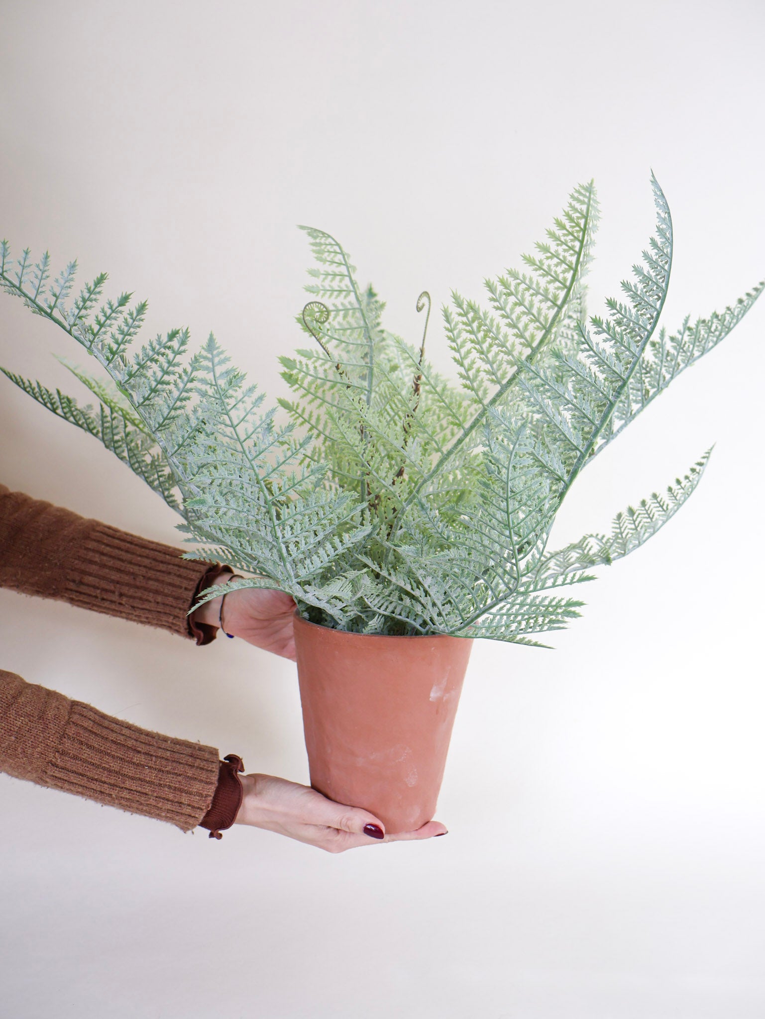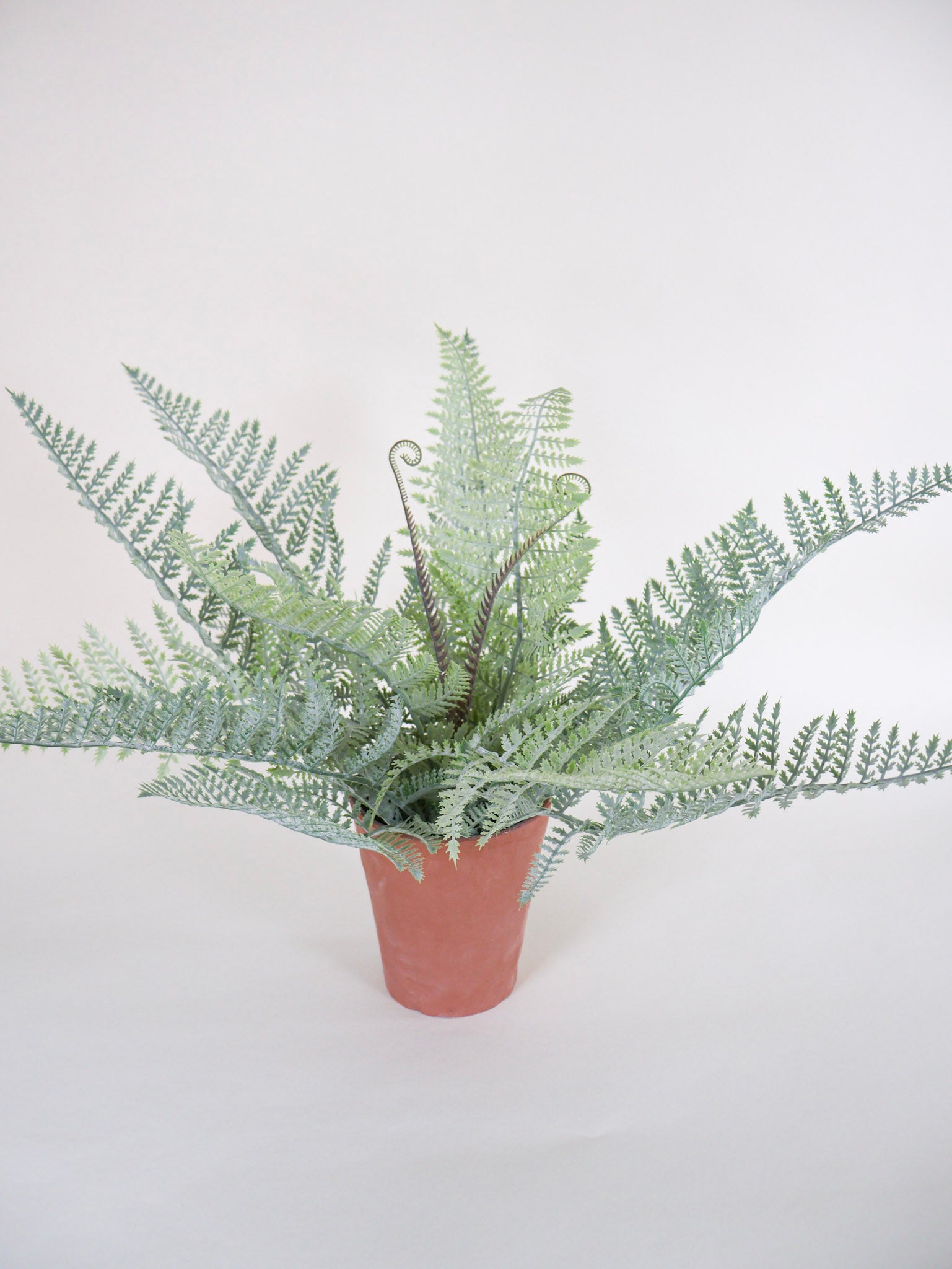This faux fern brings soft green fronds that come out from a simple terracotta pot, bringing an easy bit of life and texture to whatever corner you place it in. It's perfect for a console, open shelf, or kitchen counter where it can add an organic and natural touch. Tuck it beside a stack of well-loved books, set it near a lamp for a little contrast, or let it sit on its own to make the space feel a little more settled and welcoming.