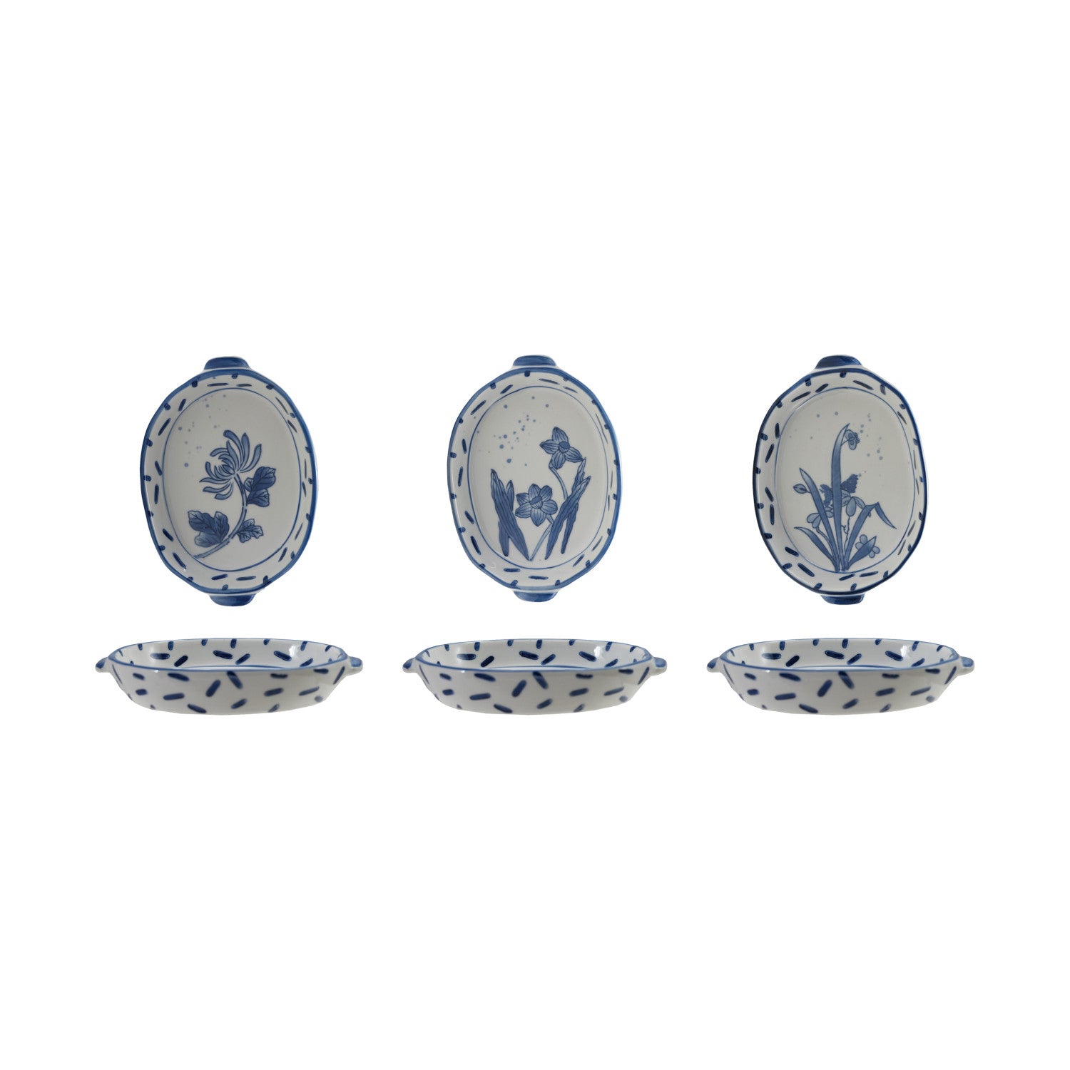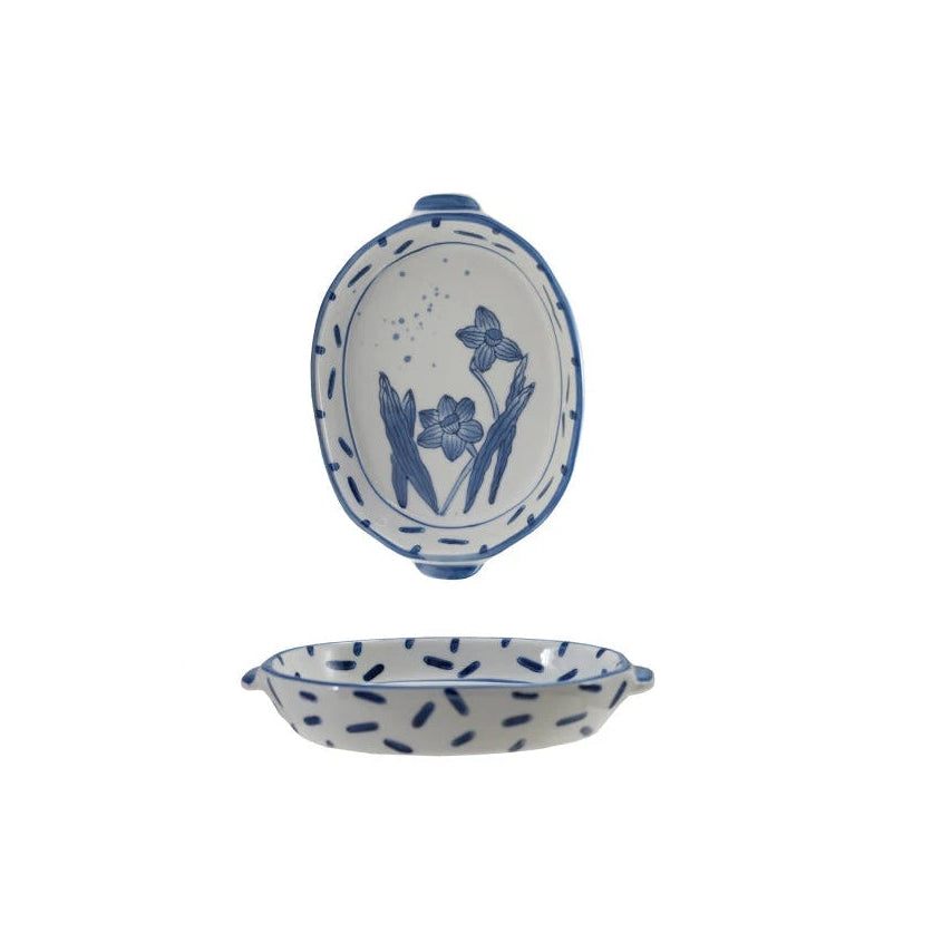Sold Individually...This decorative stoneware baker brings an artful, collected feel to the kitchen with its soft blue-and-white floral designs and gently rounded handles. Style it on open shelving or leave it out on the counter to double as decor, mixing patterns and textures for a layered look that feels cozy, casual, and perfectly imperfect.