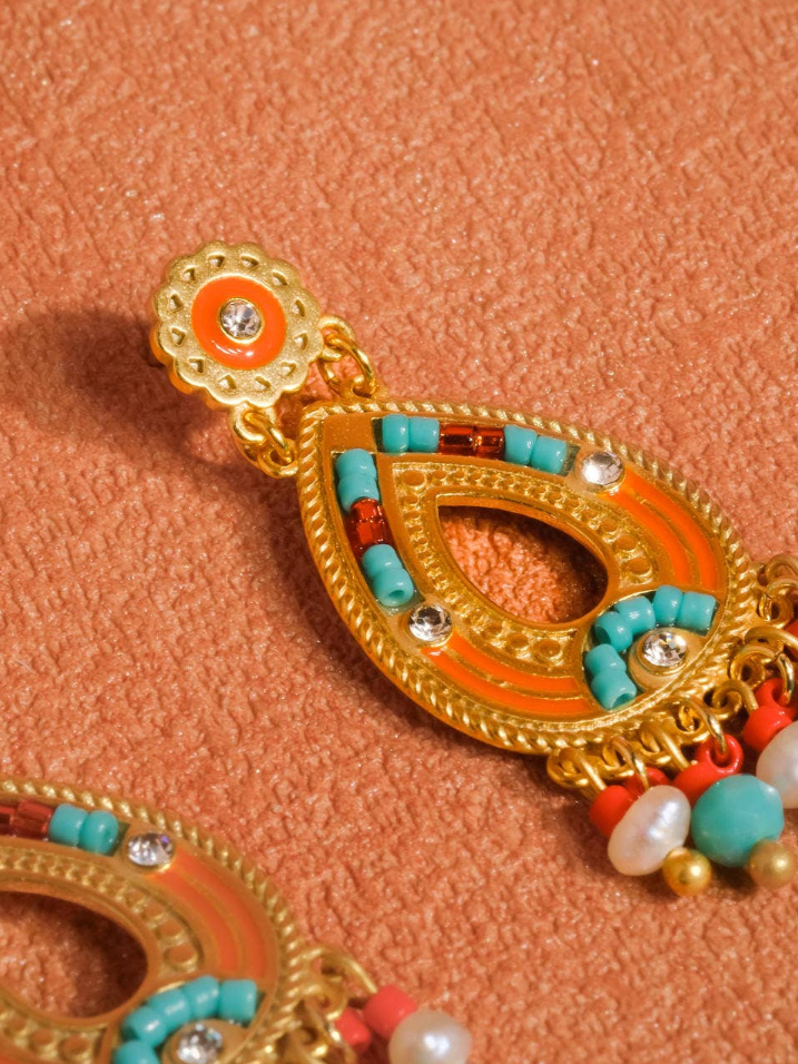 Amara features an oval silhouette with flowing tassels, accented by assorted beads and soft faux pearl details. Finished in warm 18K gold plating, they bring gentle movement and bohemian ease to any look.