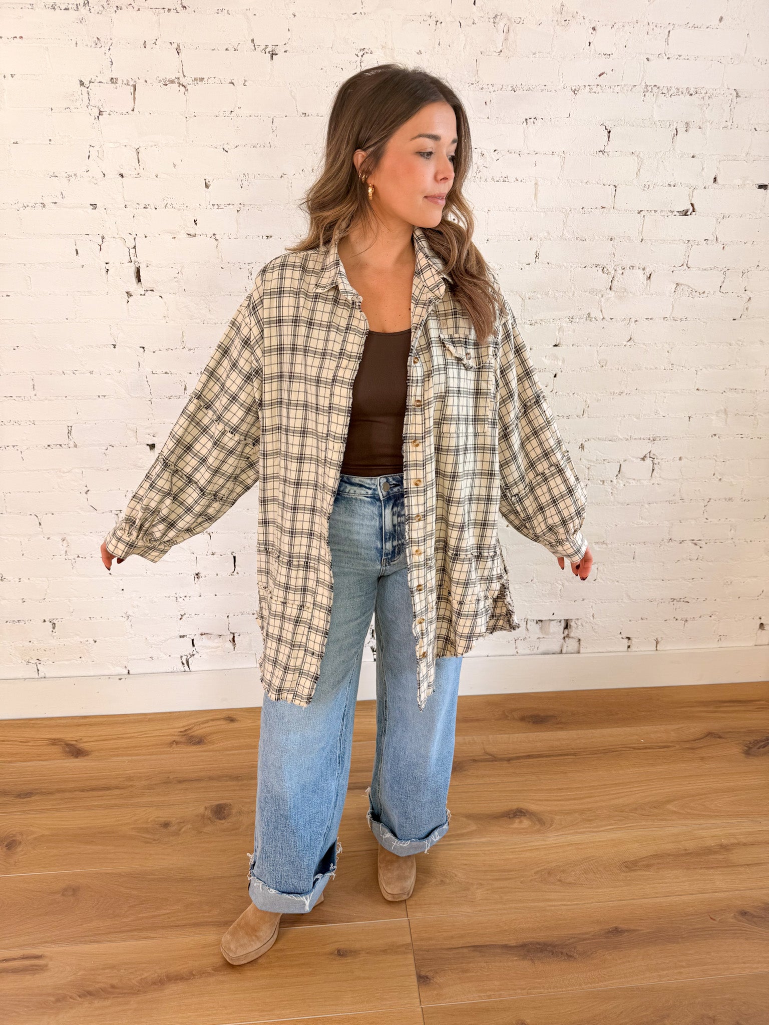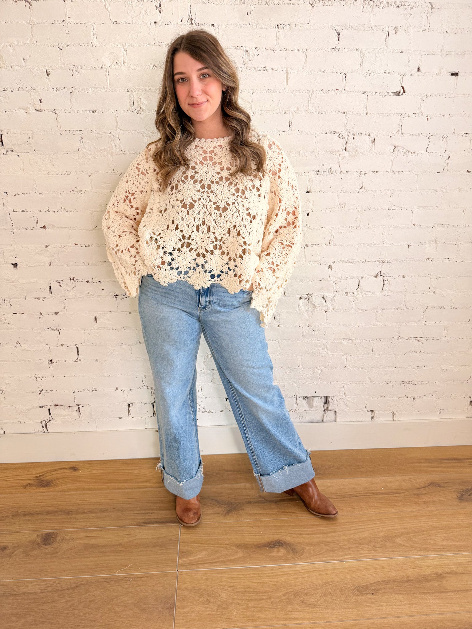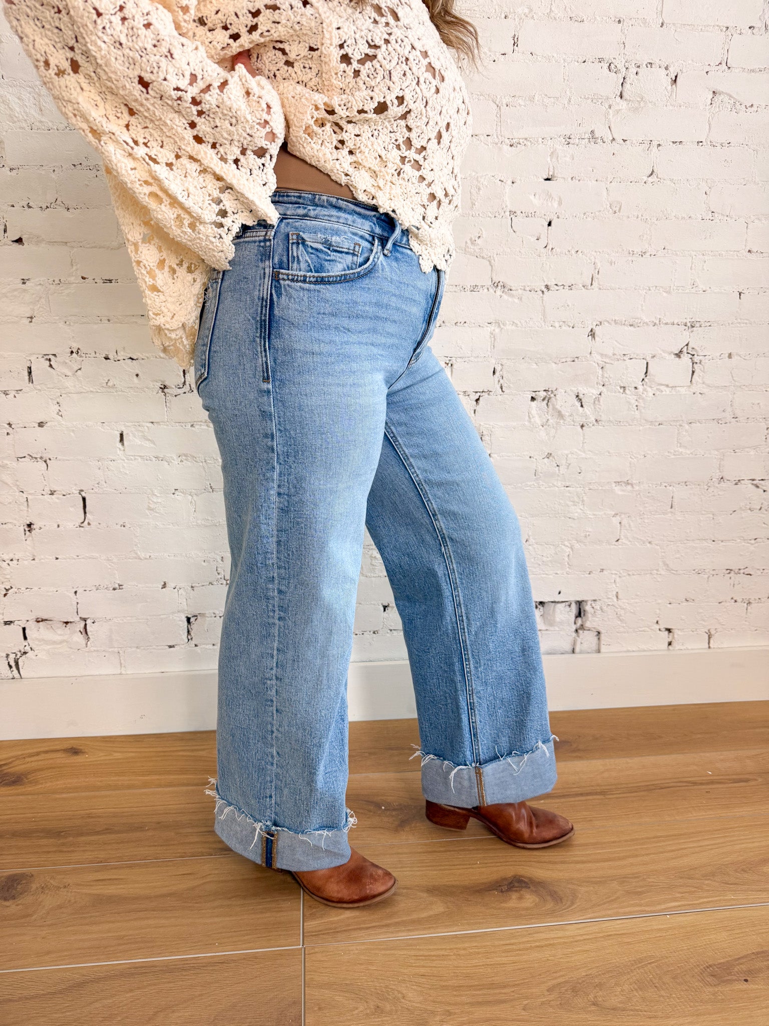 These high-rise wide-leg jeans are made for everyday ease. Crafted from comfort-stretch denim with a flattering high waist, they feature lightly distressed details and a raw hem for a perfectly lived-in look. Full-length and easy to style, they’re the kind of jeans you’ll reach for again and again.
