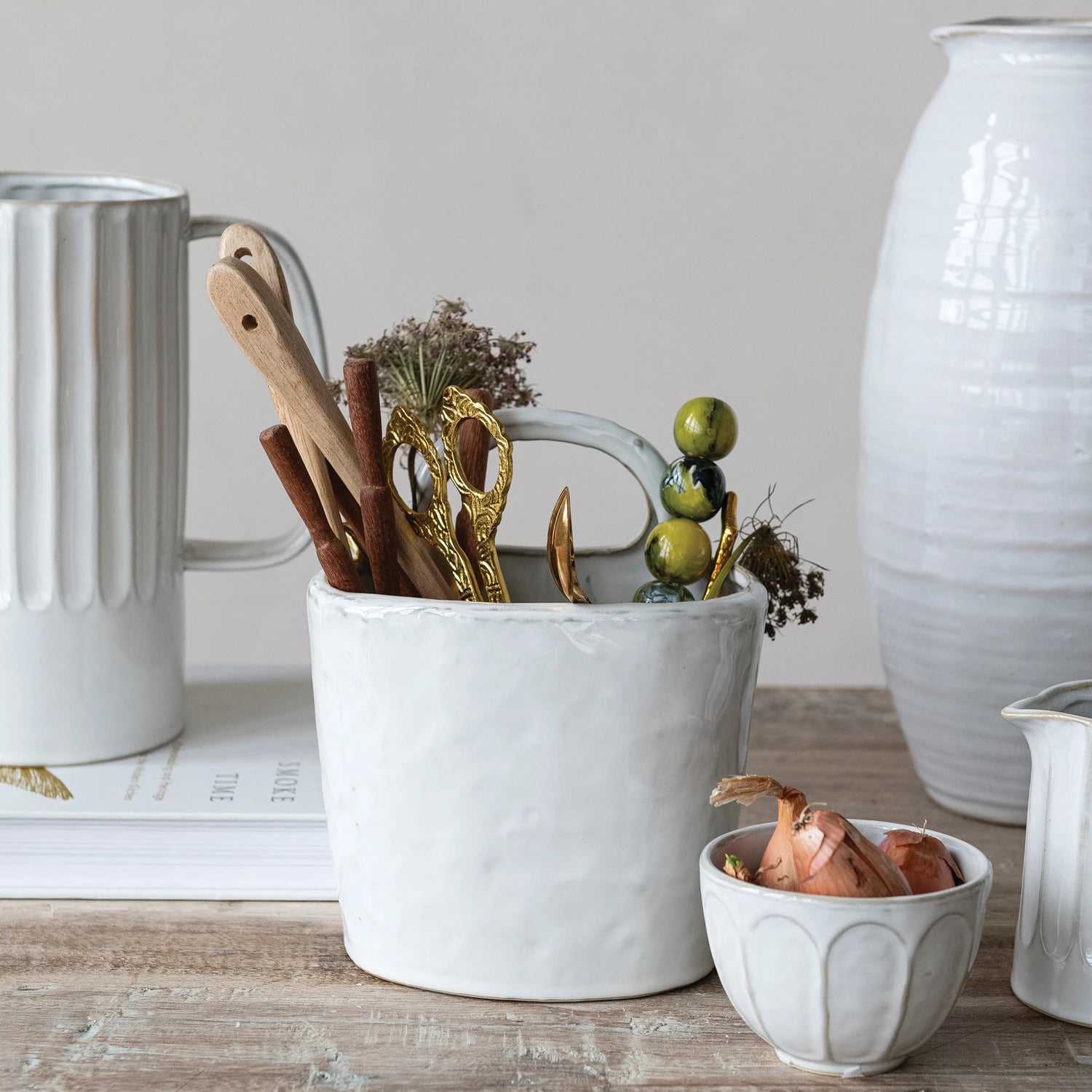 White Stoneware Utility Crock – Kitchen, Desk & Home Organization