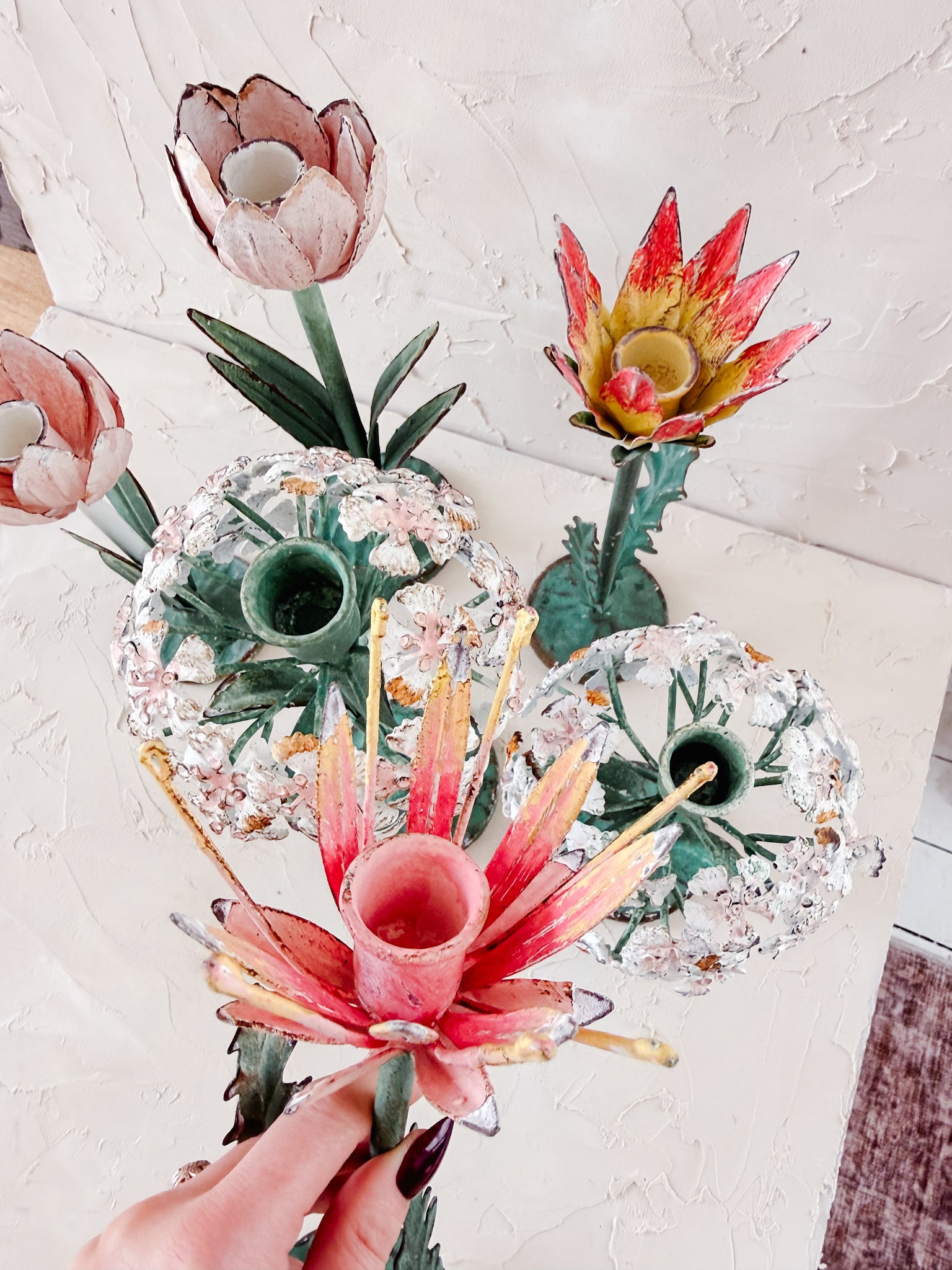 Inspired by a gathered garden in bloom, these floral taper holders are each shaped like a different flower, turning candlelight into something truly special. Cast in metal with softly hand-finished details, every stem stands tall on its own - designed to be mixed, matched, and collected over time.