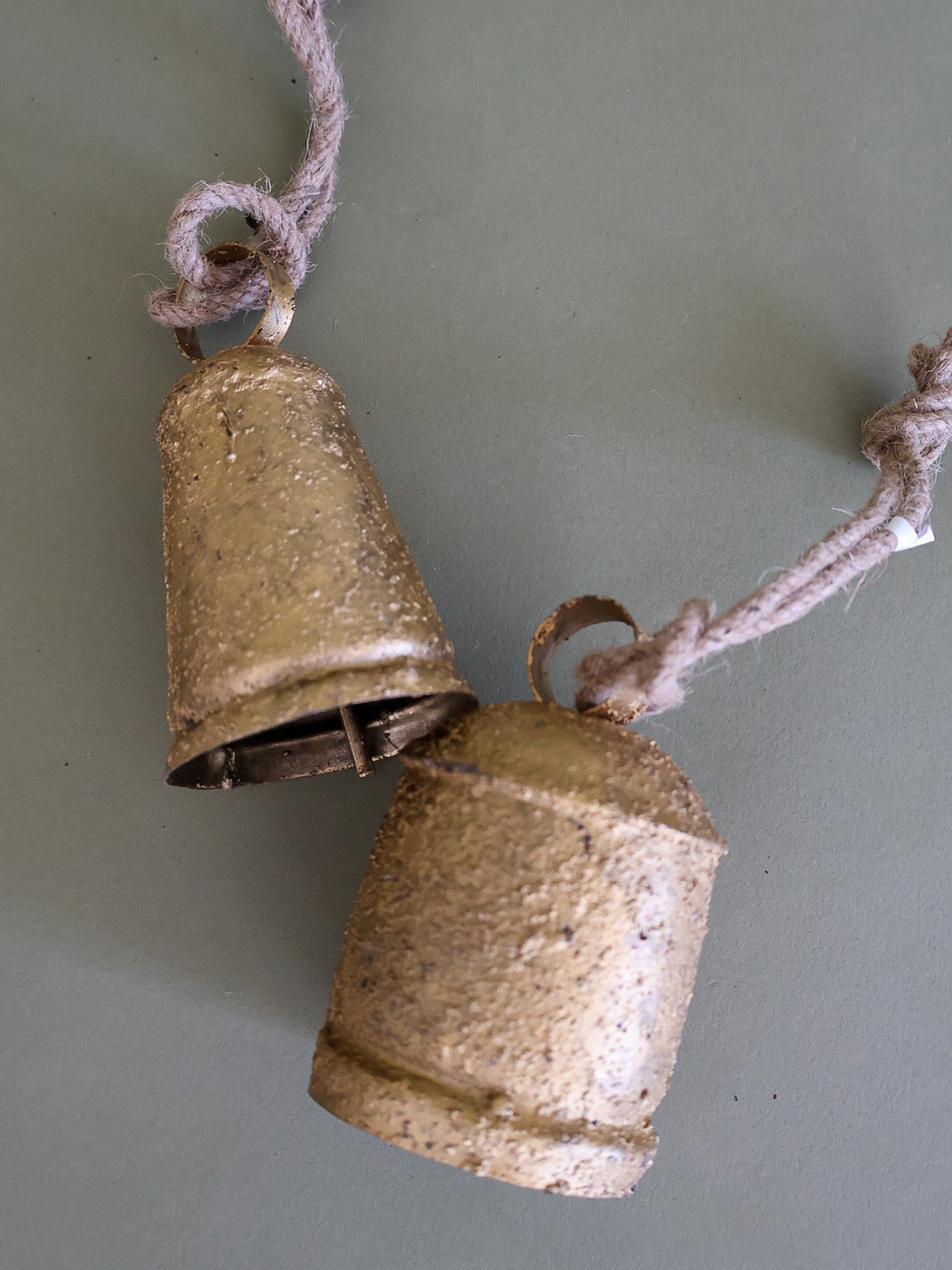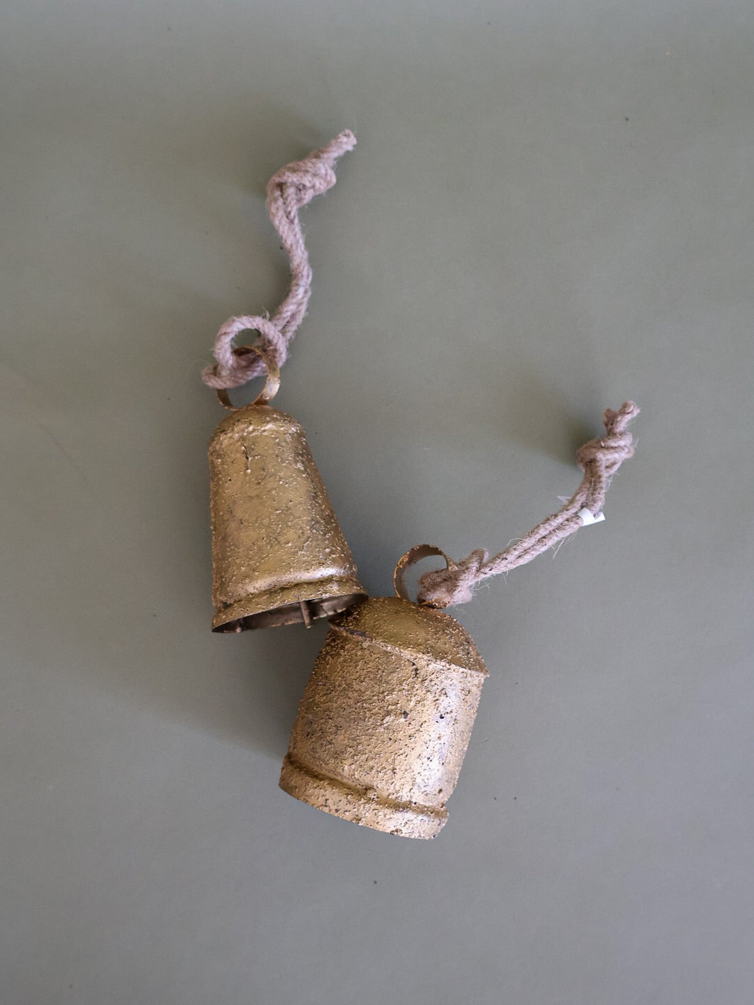 This mini metal bell ornament is adorable. We sell them individually - but grab a few to decorate your tree, garland, or little spaces in your home. Each bell rings, is made from metal, and finished with a rustic brass paint. Hung from a jute tie, they can be used an ornaments or accents to greenery.