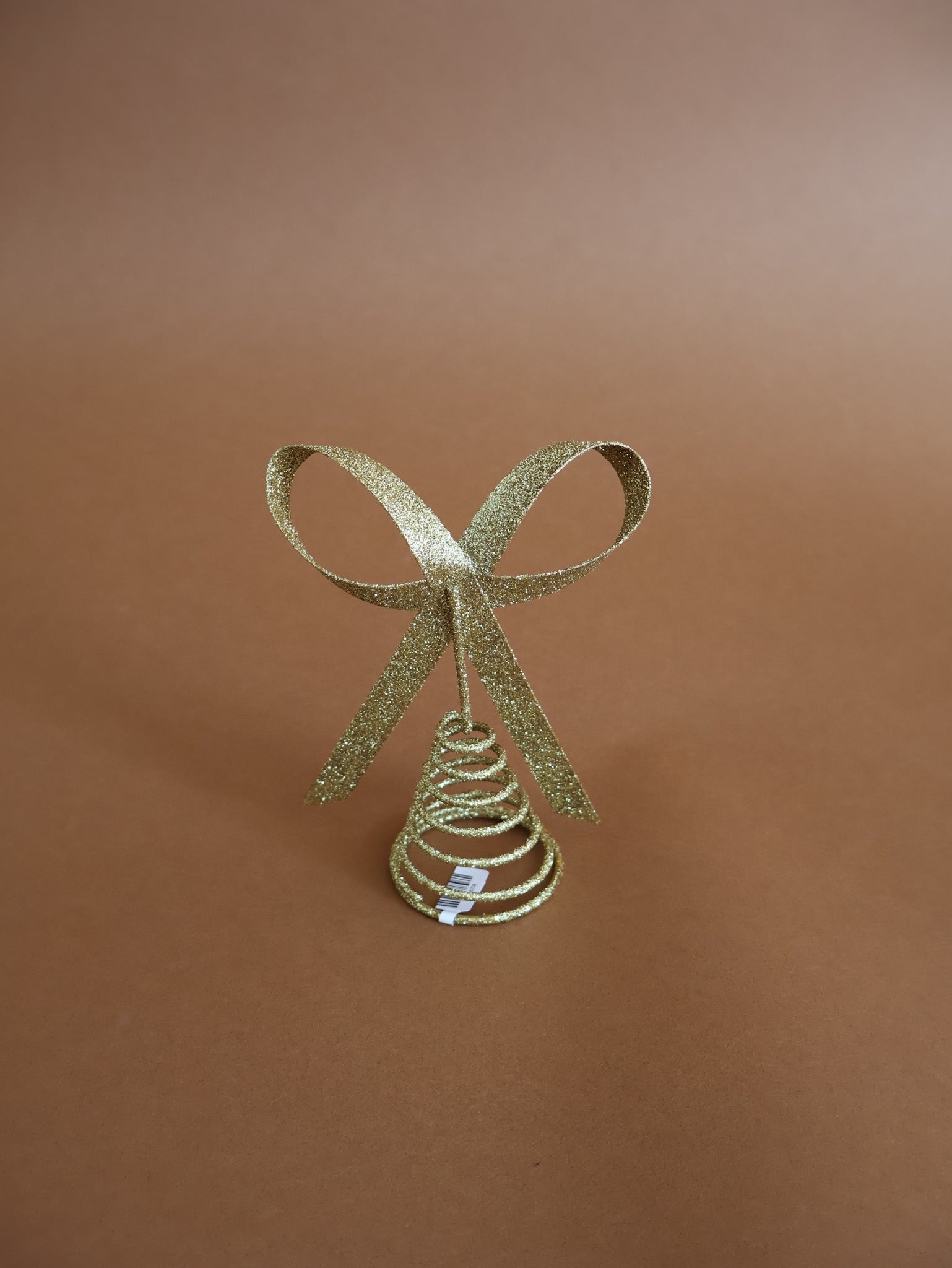 Add a bow on top of your tree with this metal + glitter gold bow! It is simple and sweet with a classic color for any tree. It is perfect for small to midsize trees (3-8ft).