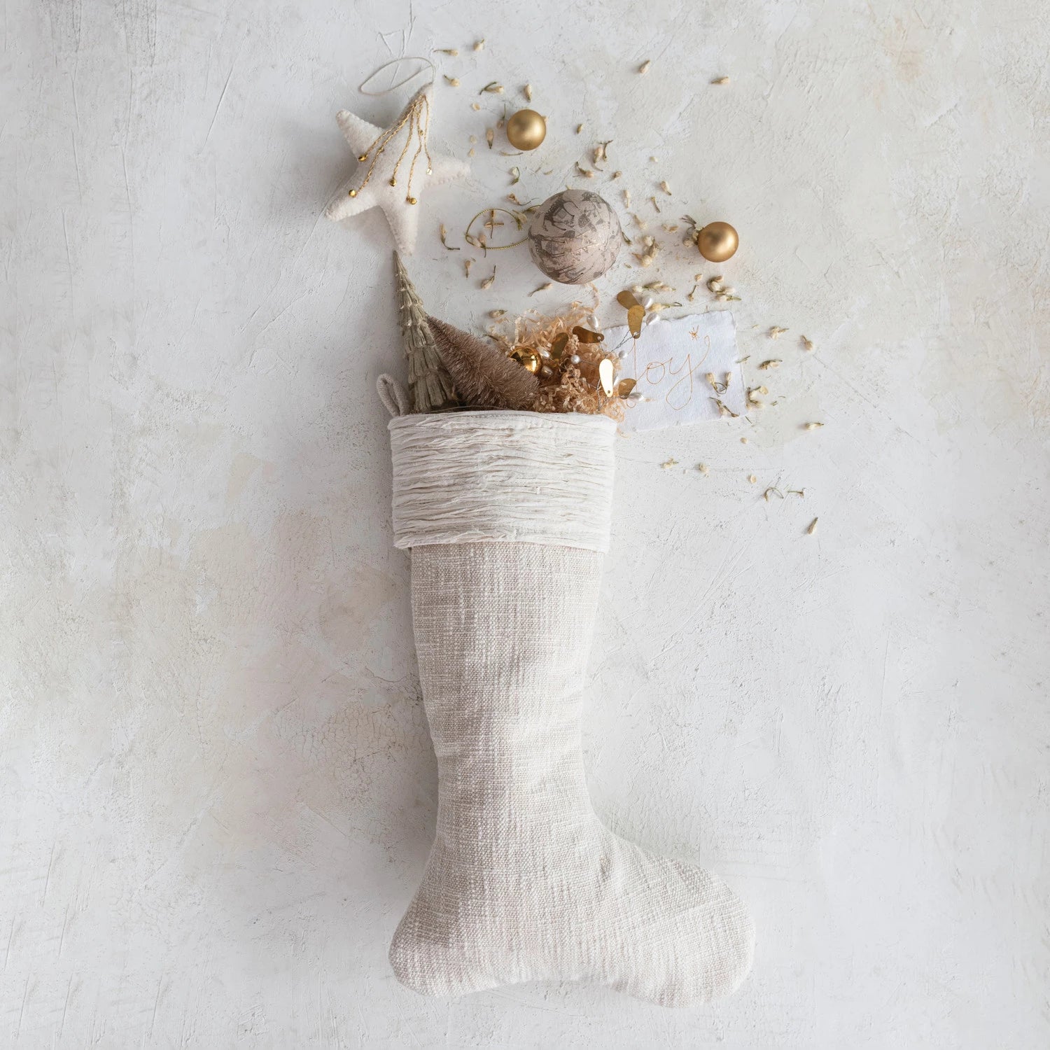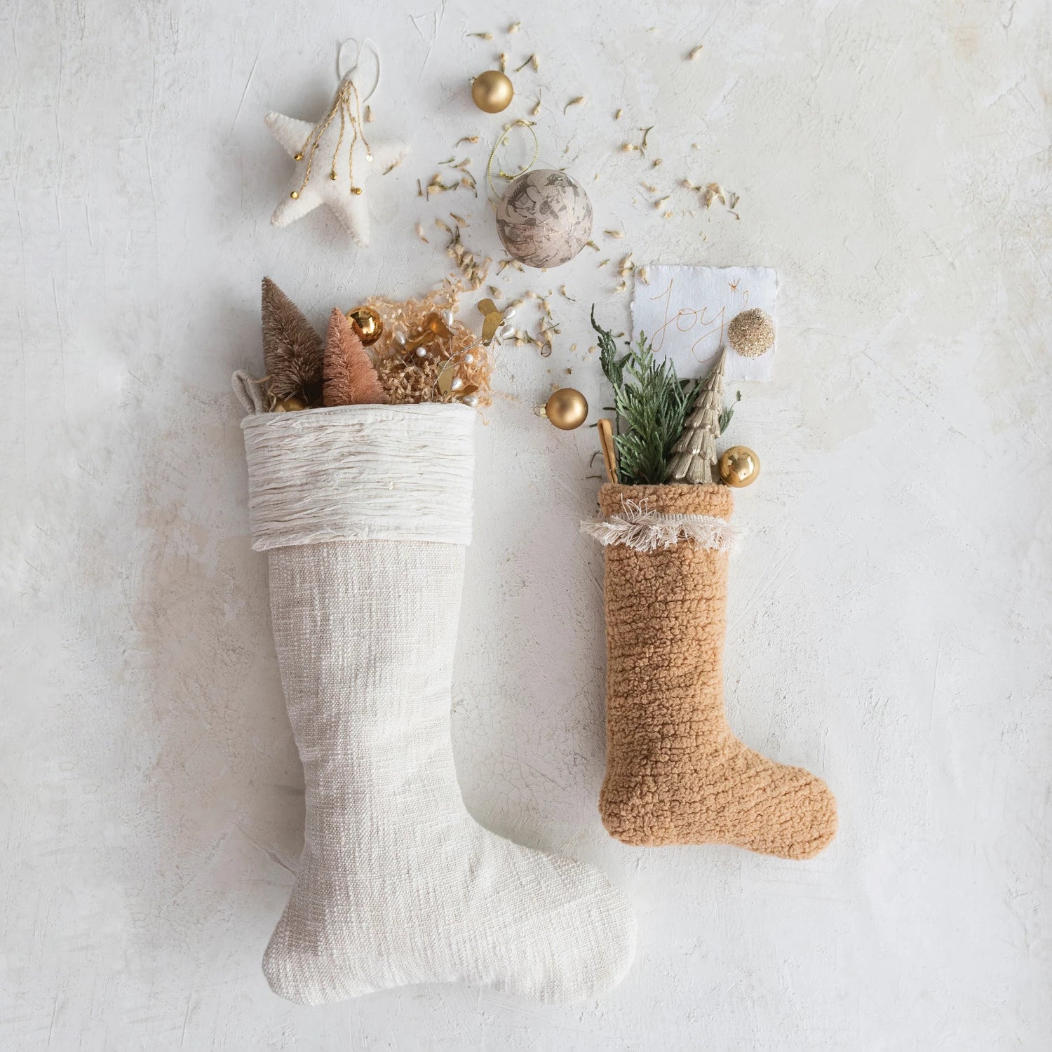 These stocking is the perfect simple yet beautiful stocking. So easy to mix and match with any other stocking with its texture and cream color!
