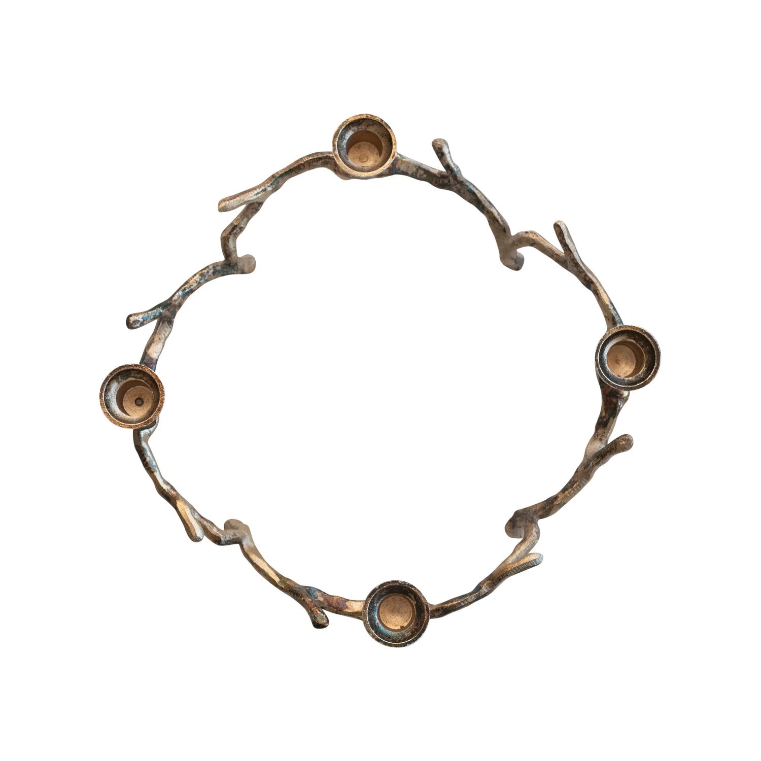 This antique wreath candleholder is a reverent and elegant centerpiece for the holiday season. The oxidized antique gold finish provides a rich, vintage look, while the classic wreath design symbolizes eternal life and the passage of the four weeks of Advent.