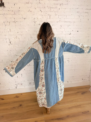 Cotton Velvet Lumbar Pillow with Embroidered Butterflies & Chambray Back
