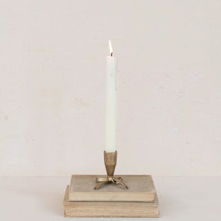 Hand-Forged Iron Bow Shaped Taper Holder, Antique Gold Finish
