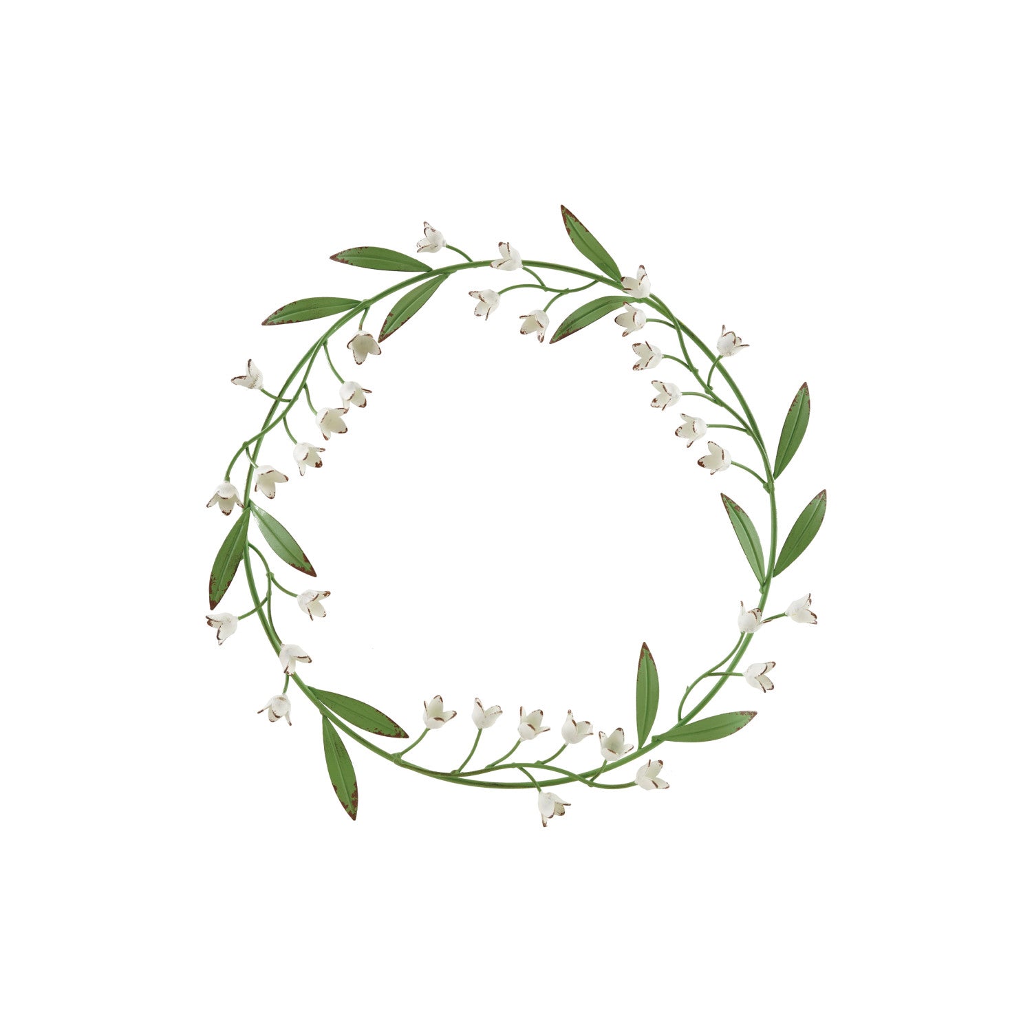 The Lily of the Valley Wreath brings a soft, nostalgic charm to any space with its delicate metal blooms and gently arched greenery. Inspired by vintage toleware, each stem is hand-shaped and finished with intentional distressing, giving the piece a timeworn, collected feel. The petite white bells curve naturally around the wreath, creating a light, airy silhouette that feels equally sweet and refined. Style it on a door, above a mantel, layered into a gallery wall, or hung in a kitchen or bedroom for a subtle floral accent that feels romantic without being overly formal. It also makes a beautiful centerpiece for a dining or party table - place candles, a small vase, or a bowl of fruit in the center for an effortless, garden-inspired tablescape.