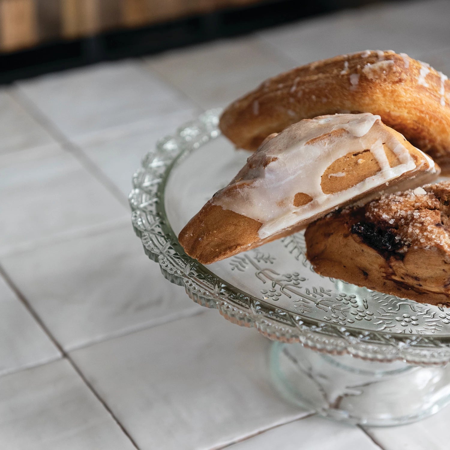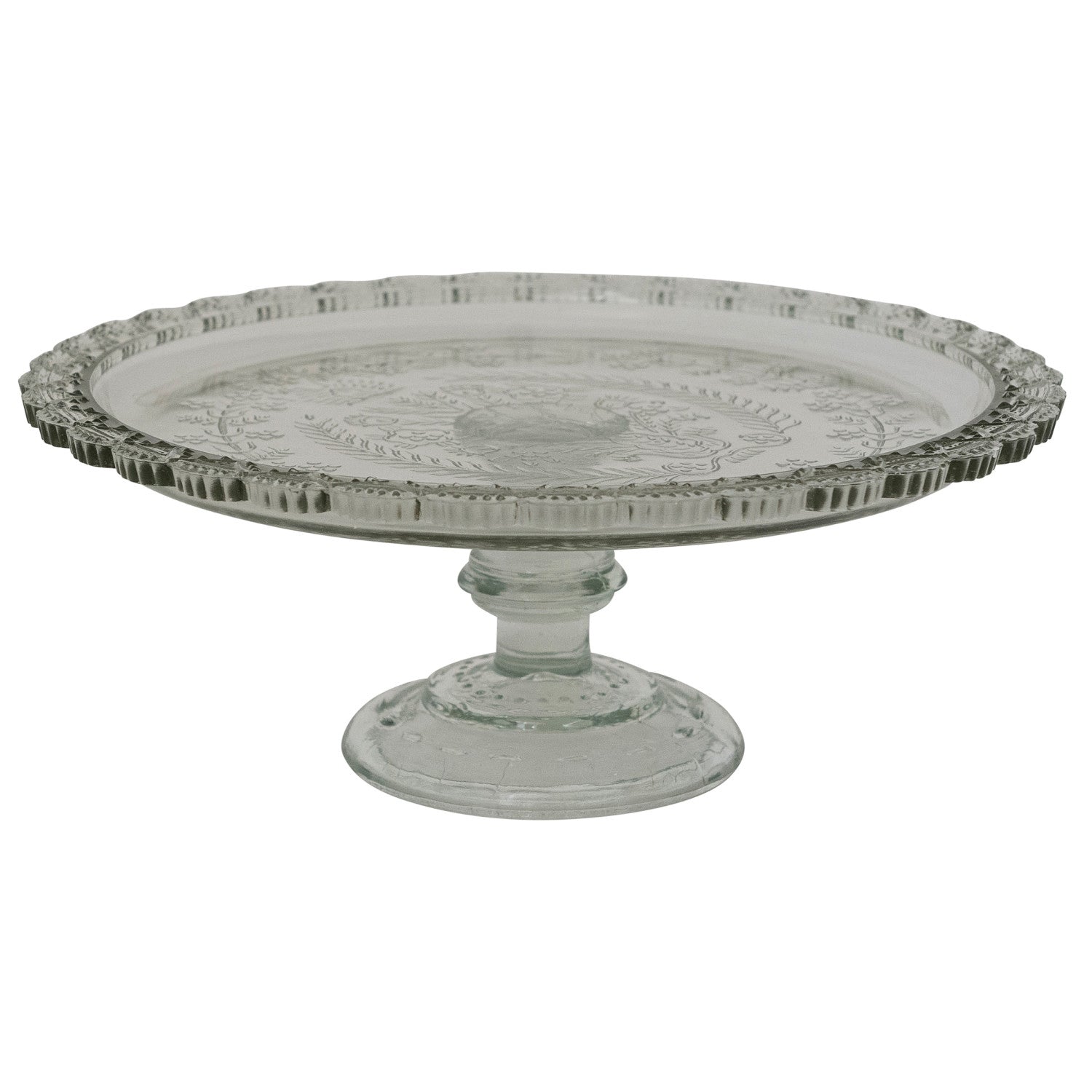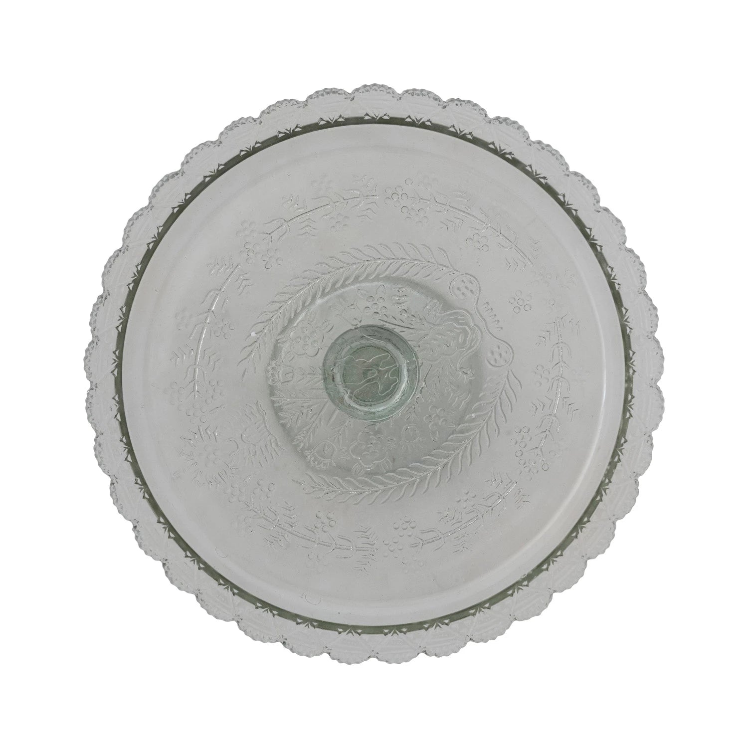 Elevate your favorite decor with this charming pressed glass pedestal. The delicate scalloped edge adds a touch of vintage-inspired elegance, while the clear glass keeps it versatile and timeless. Perfect for displaying small desserts, candles, or collectibles, it brings a soft, collected charm to any surface.
