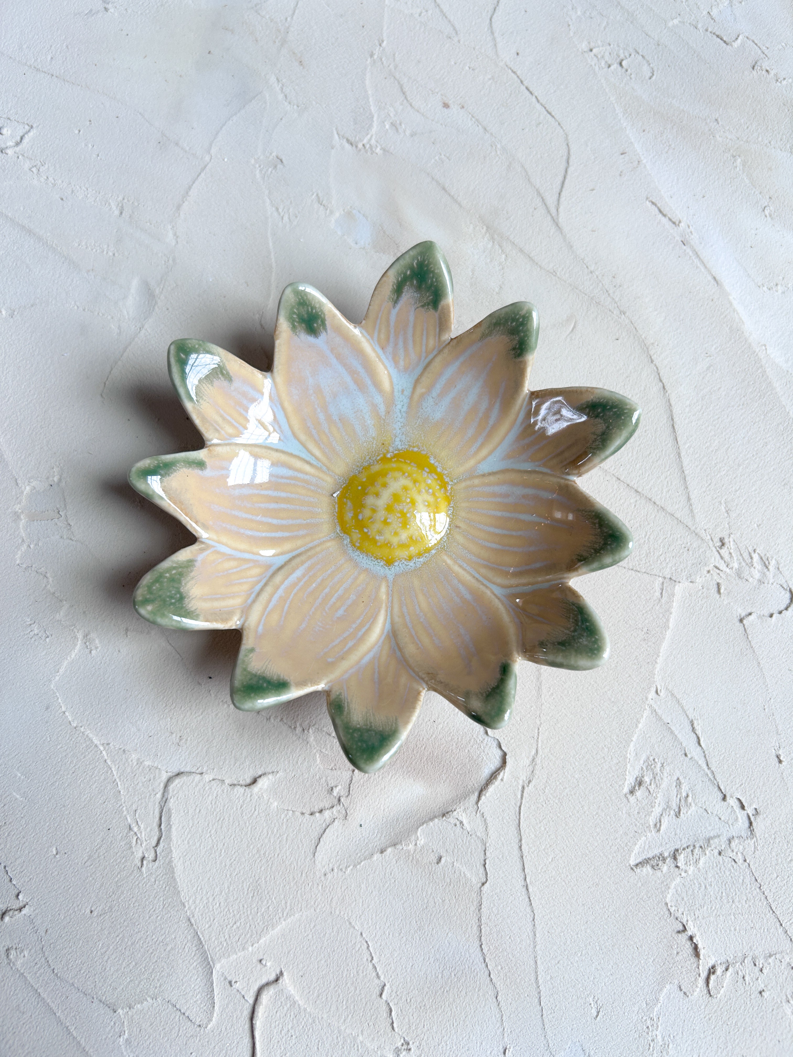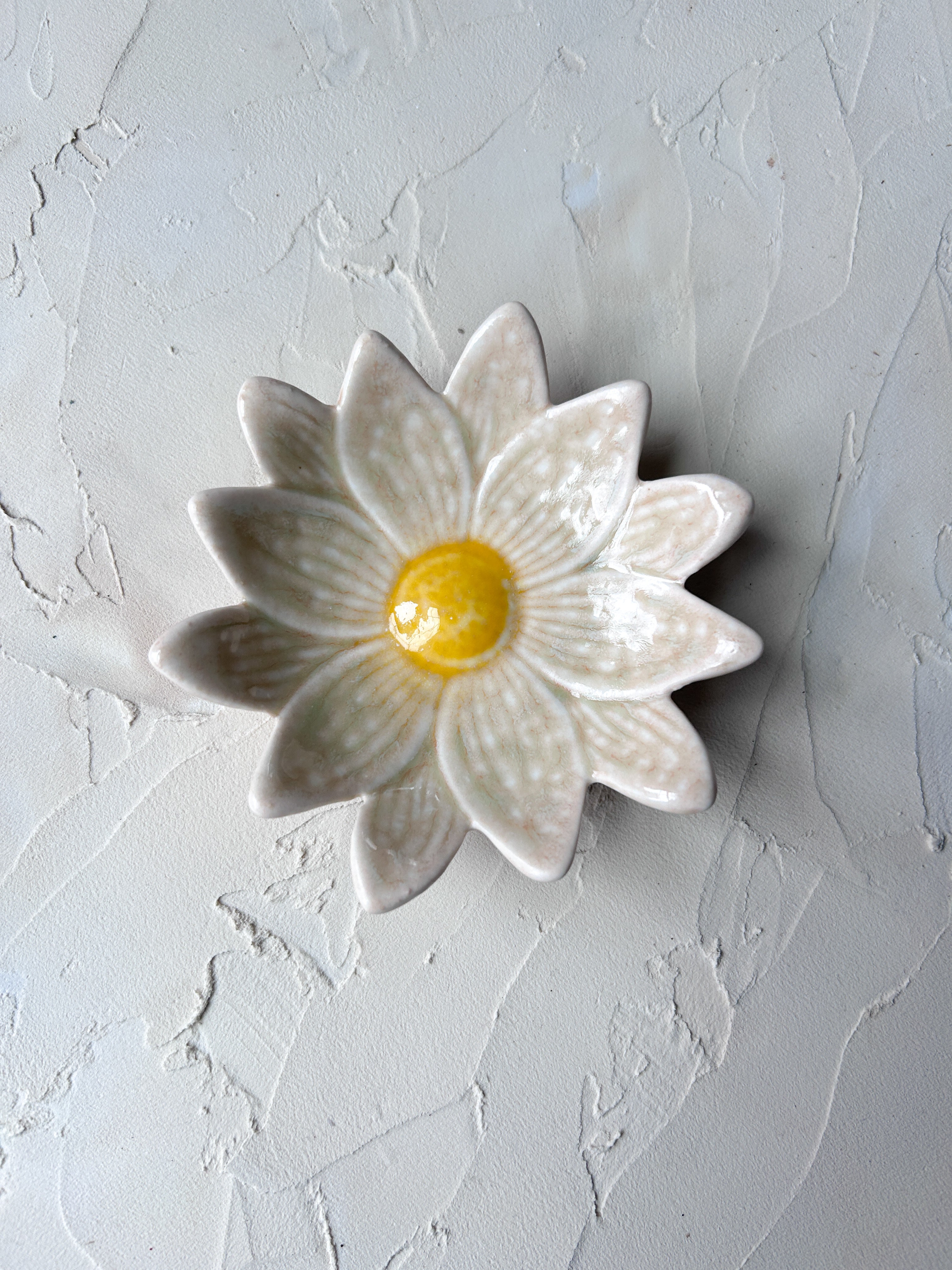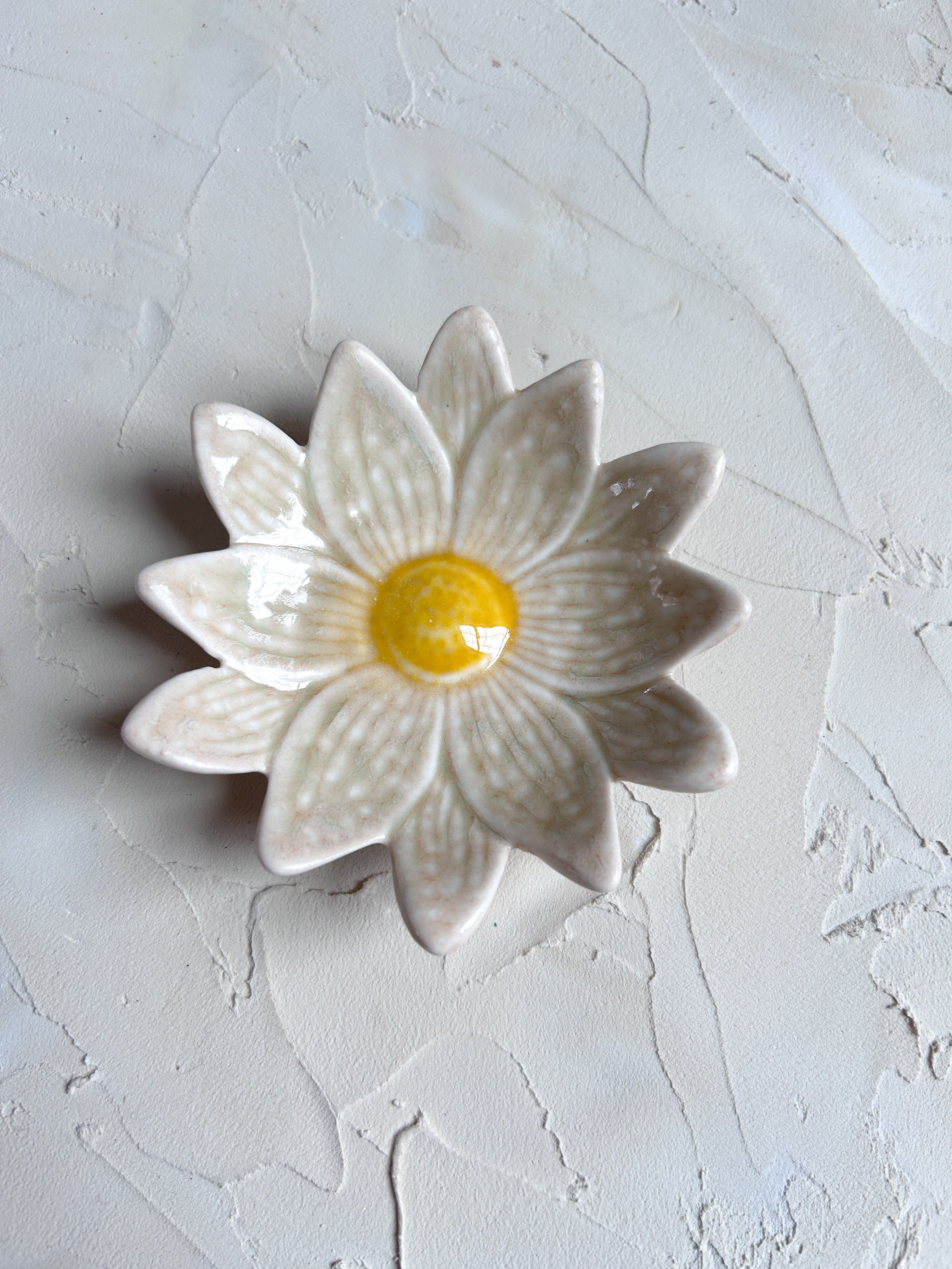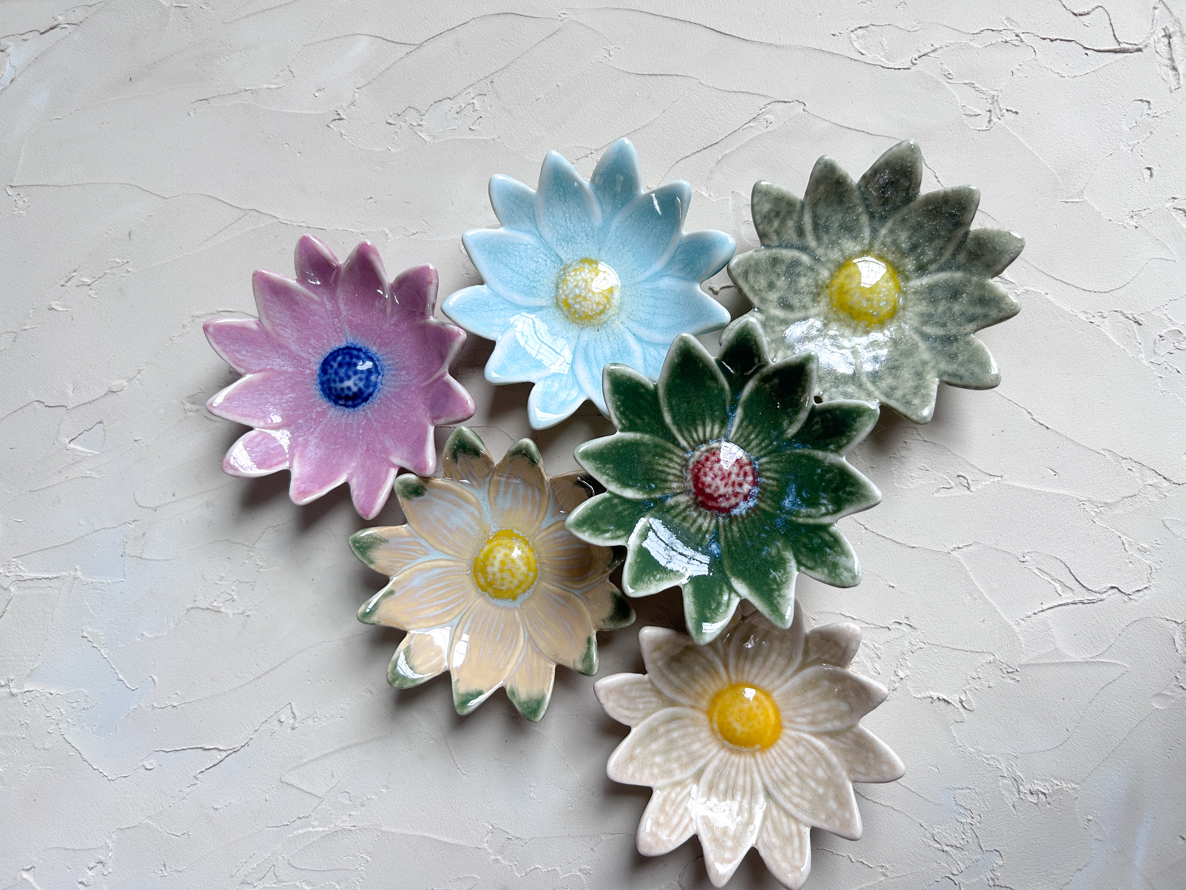 Sold Individually...These sweet Ditzy Flower dishes bring a cheerful, garden-inspired touch to your table. Each dish features a blooming daisy design with softly scalloped petals and a glazed center that adds a playful pop of color, making every piece feel a little special. Perfect for holding snacks, desserts, jewelry, or small everyday essentials, they’re easy to mix and match for a collected look that feels relaxed and thoughtful. Sold individually, they’re ideal for building a set over time, mixing colors, or adding a single floral accent to a table, vanity, or shelf. Check out our full Ditzy Floral Collection, here!