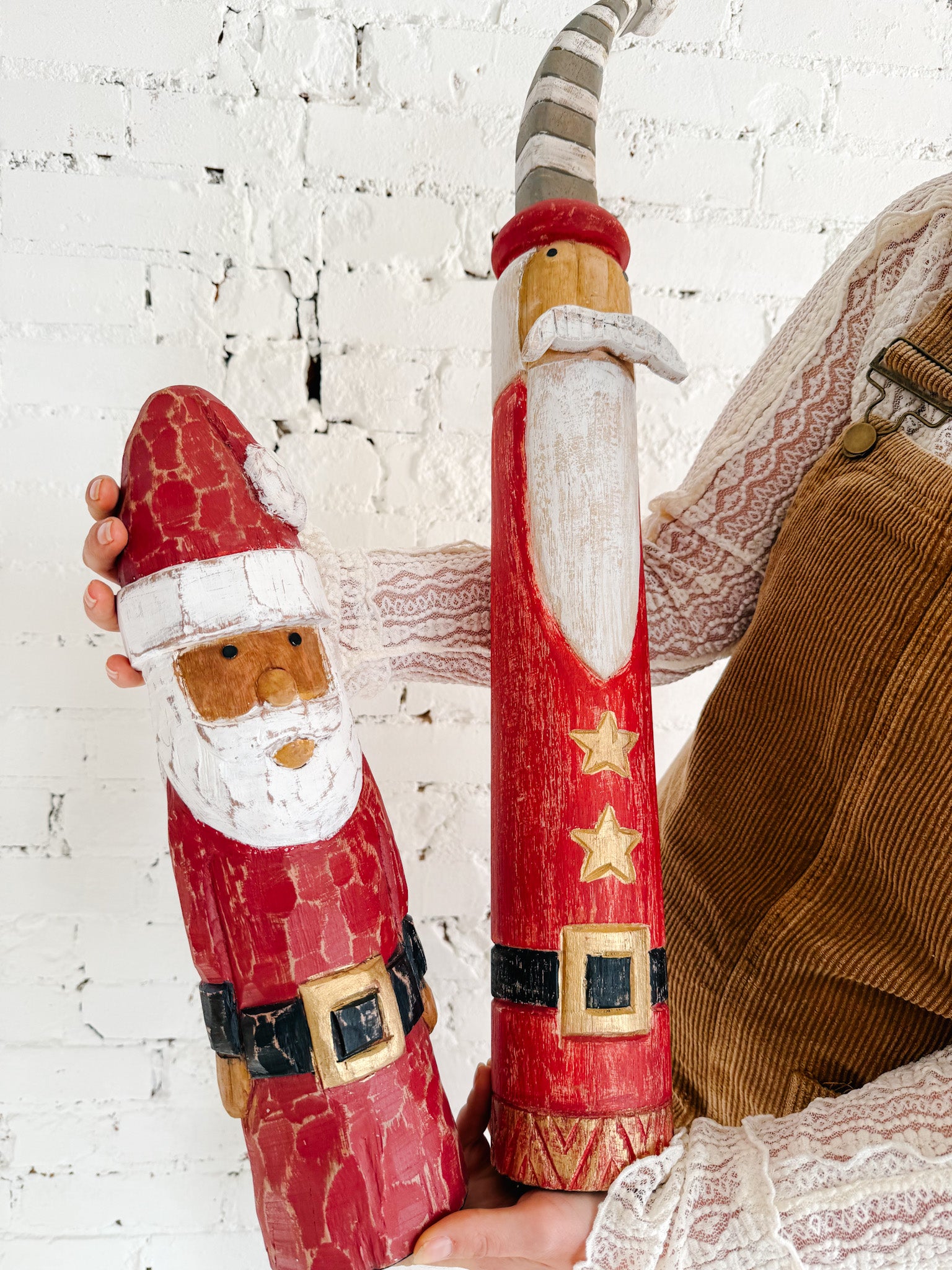 A primitive-style piece full of charm and character. Carved by hand from richly grained mango wood, each Santa has its own unique quirks and imperfections, just the way we like it. Simple, rustic, and heartwarmingly nostalgic, he’s the kind of decor that feels like it’s been part of your holidays forever.