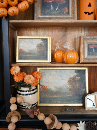Still Life Of Pumpkins, Grapes, And Peaches Framed Wall Art