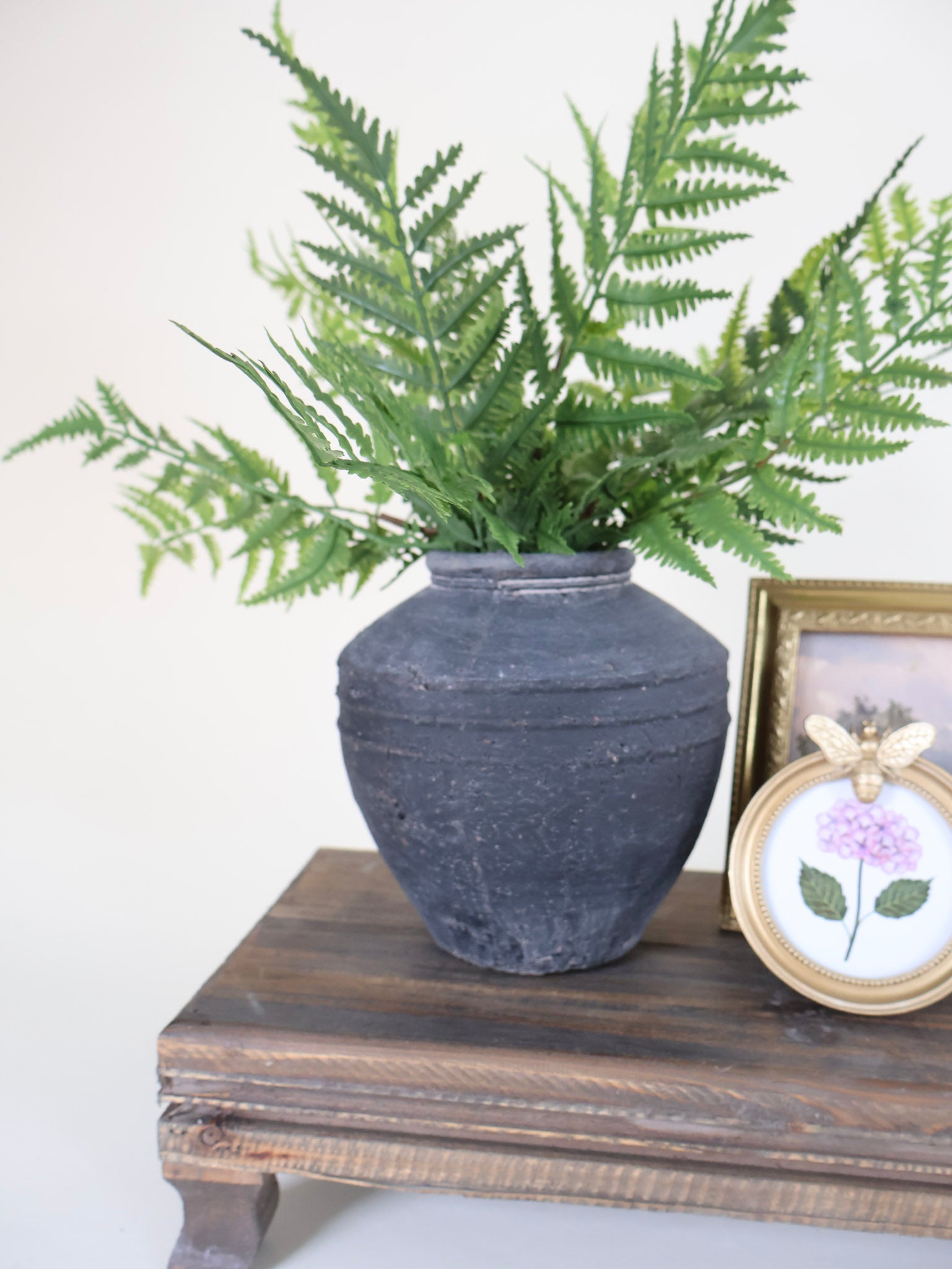 This petite round frame features a delicate bee detail and a warm antique finish that brings a playful, collected feel to shelves and tabletops. Designed with a sawtooth hanger on the back, it can also be hung on the wall for an easy layered look, whether on its own or mixed into a gallery arrangement. The included art can be swapped out for a favorite photo or small print, making it a versatile piece that adds personality and charm wherever it’s placed.