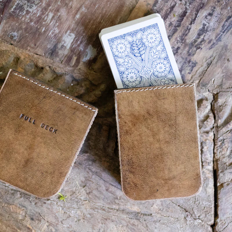 Carry your cards in style with this sleek and sophisticated Leather Card Case featuring a full deck of playing cards and the quote "Full Deck". Made from high-quality leather and durable materials, this card case protects your cards while also adding a touch of personality to your game nights.