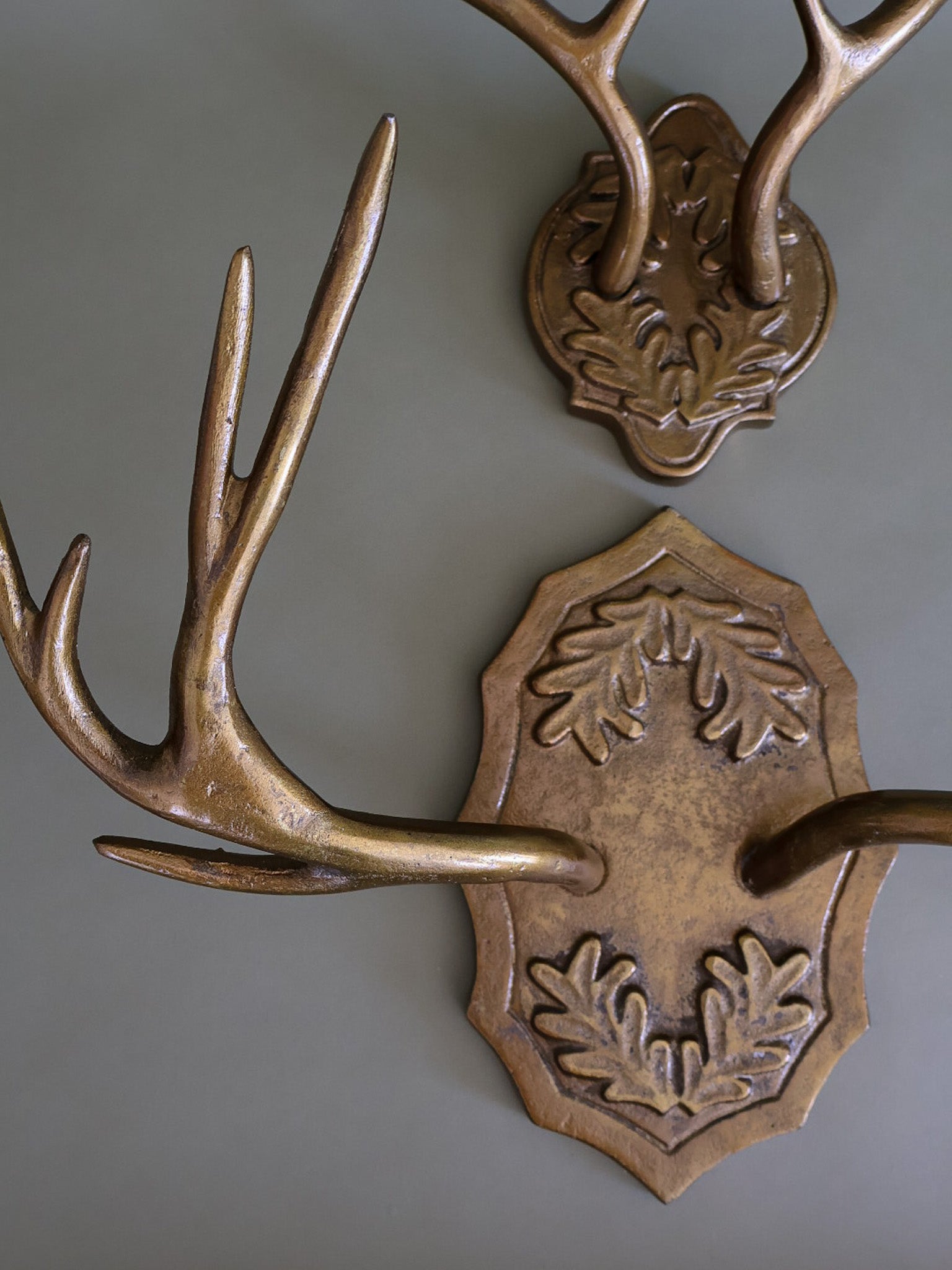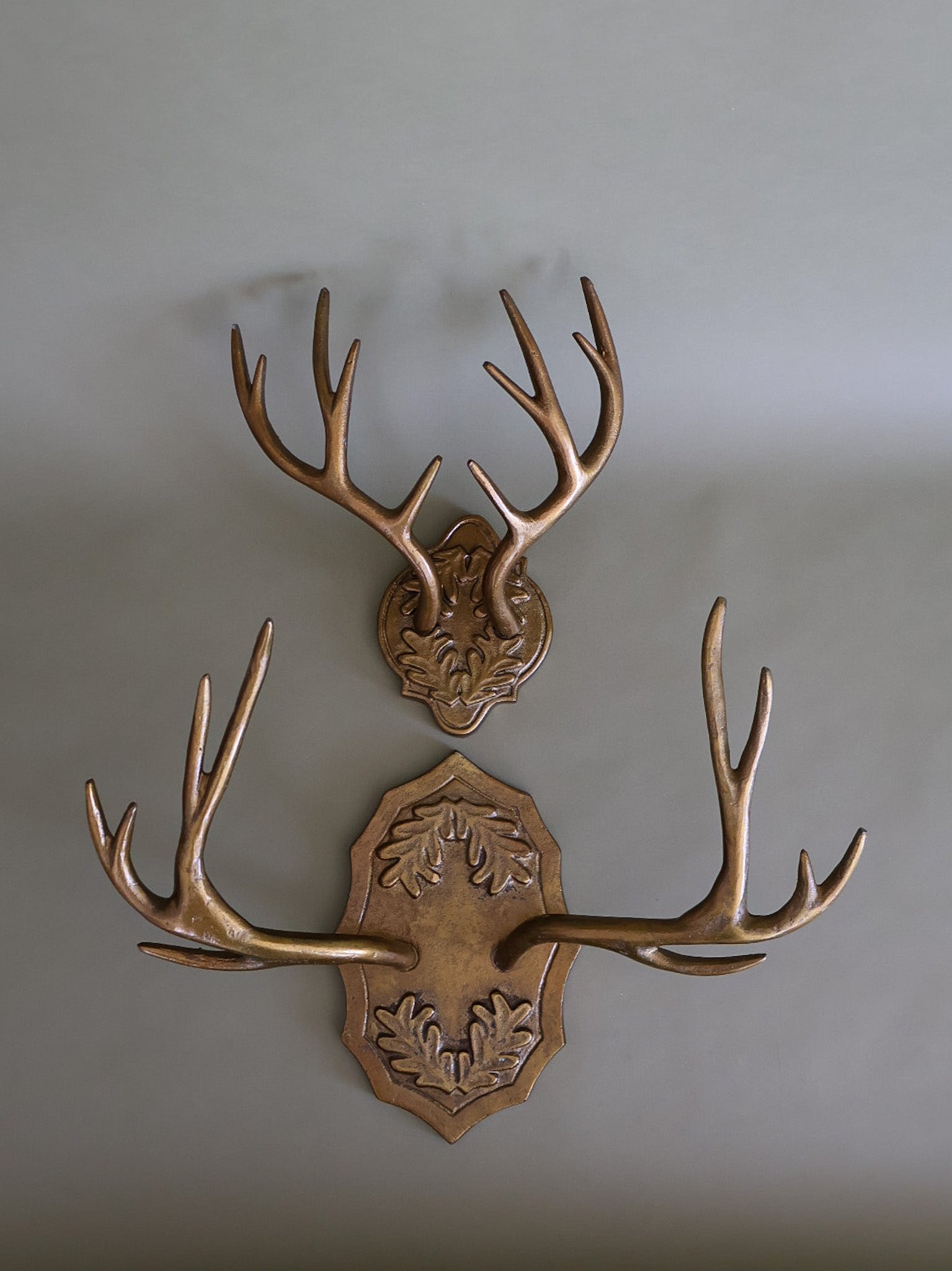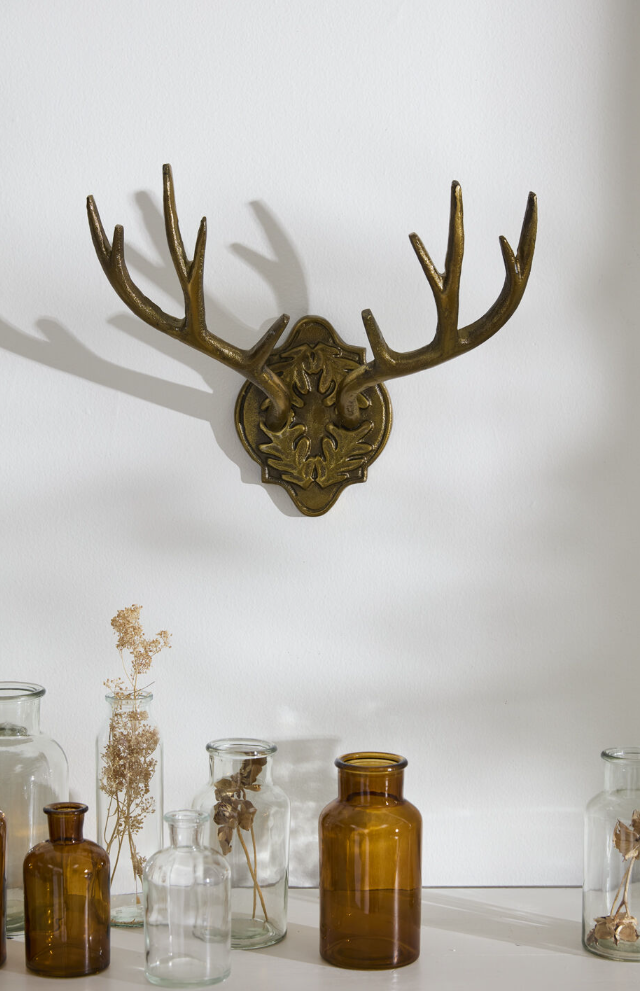 Bring a sense of rugged tradition to your holiday home with these cast antlers, finished in a warm golden tone and mounted on an oak-leaf plaque. Strong and timeless, they add a stately presence that feels right at home above the mantel, flanking a Christmas tree, or anchoring a holiday gallery wall. Style them with evergreen garlands, twinkling lights, and rich velvet ribbons for a lodge-inspired festive look, or keep it classic with candles and brass accents for understated holiday grandeur. However you dress them, these antlers ground your seasonal décor with strength, heritage, and a touch of masculine elegance.