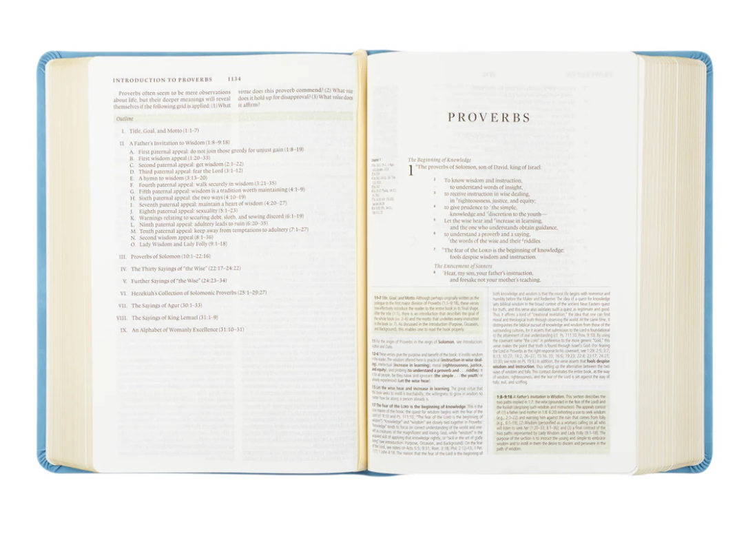 This beautiful ESV Study Bible is inspired by the town of Bethany, where Jesus raised Lazarus from the dead. The gold-foiled butterfly, intentionally placed, symbolizes new life—just as Lazarus received through Christ’s resurrection power. In the same way Jesus called Lazarus to remove his grave clothes, the butterfly emerges in a new and radiant form, reflecting the transformation we experience in Christ. The soft blue cover invites you to open the Word and be renewed by the love story of the Gospel within.