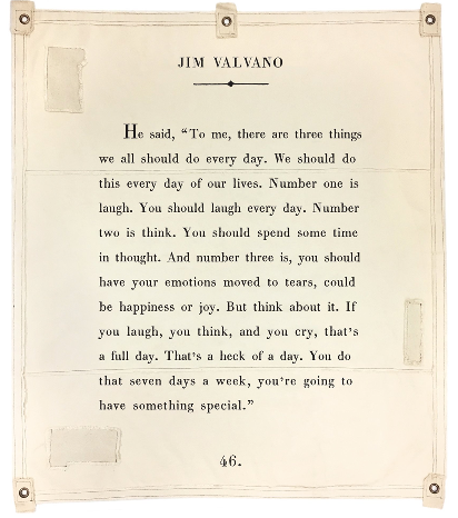 “He said, ‘To me, there are three things we all should do every day. We should do this every day of our lives. Number one is laugh. You should laugh every day. Number two is think. You should spend some time in thought. And number three is, you should have your emotions moved to tears, could be happiness or joy. But think about it. If you laugh, you think, and you cry, that's a full day. That's a heck of a day. You do that seven days a week, you're going to have something special.’"