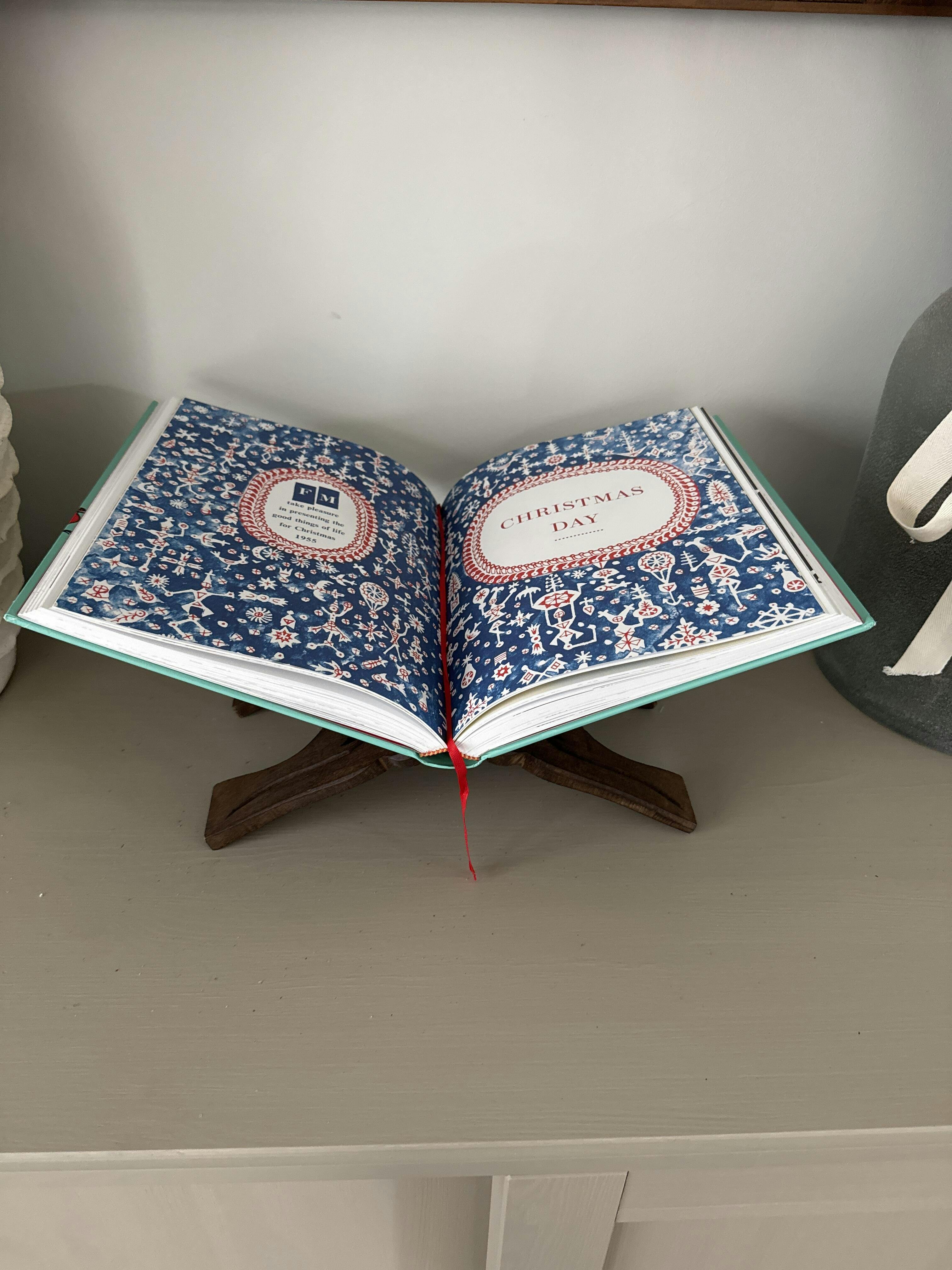 Love the carved details and color of this book stand. It makes the stand look interesting with or without a book on it.