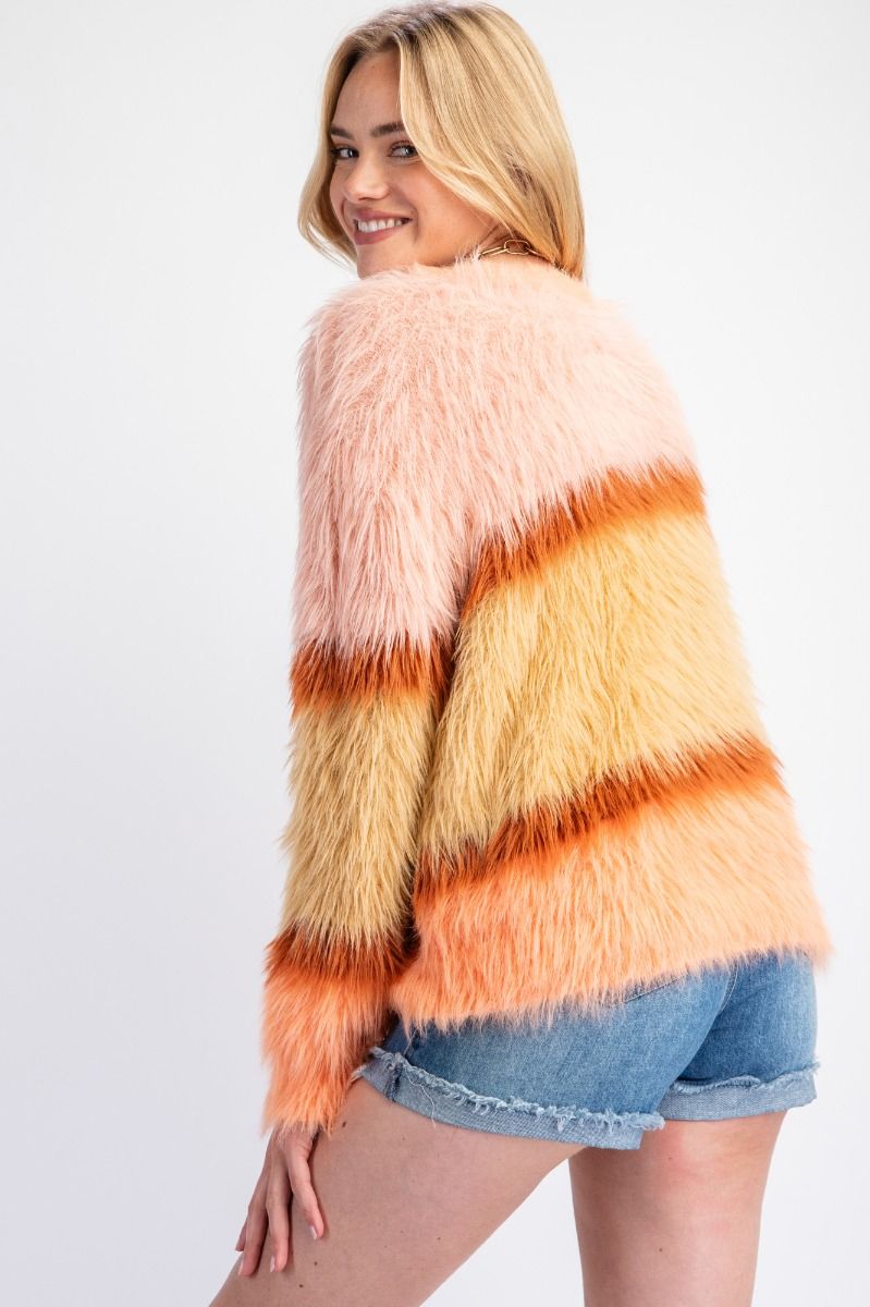 This color-block sweater is basically a warm hug you get to wear. Made from a soft, stretchy knit that feels like mohair, it keeps things comfy! The relaxed fit, rounded neckline, and stripe blocking make it the kind of pullover you’ll reach for an easy playful look.